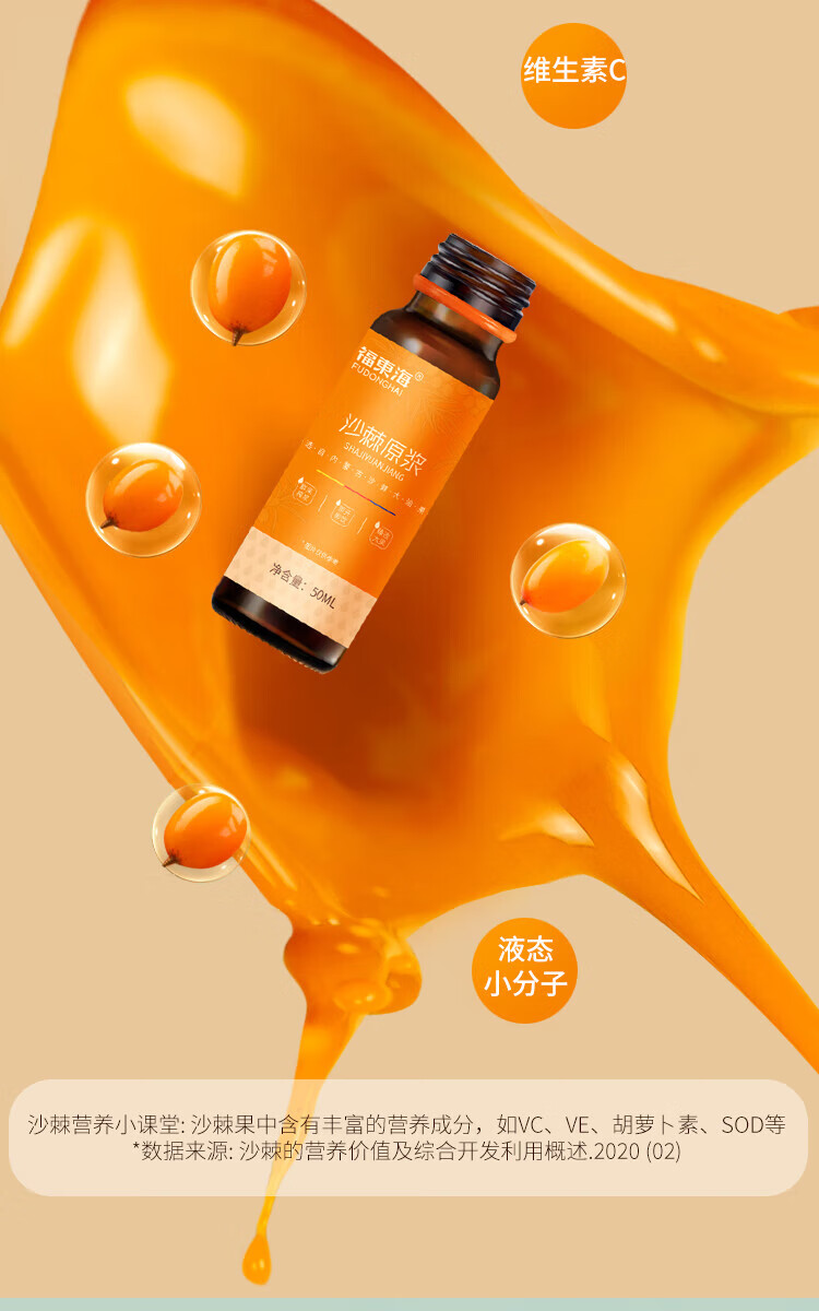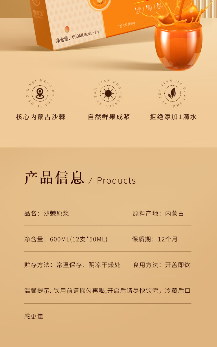 【福东海】沙棘原浆600ml(50ml *12瓶 )/盒 FDH08010011