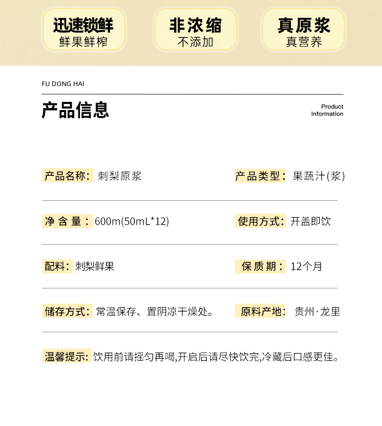 【福东海】刺梨原浆600毫升/盒(50毫升*12) FDH08010020
