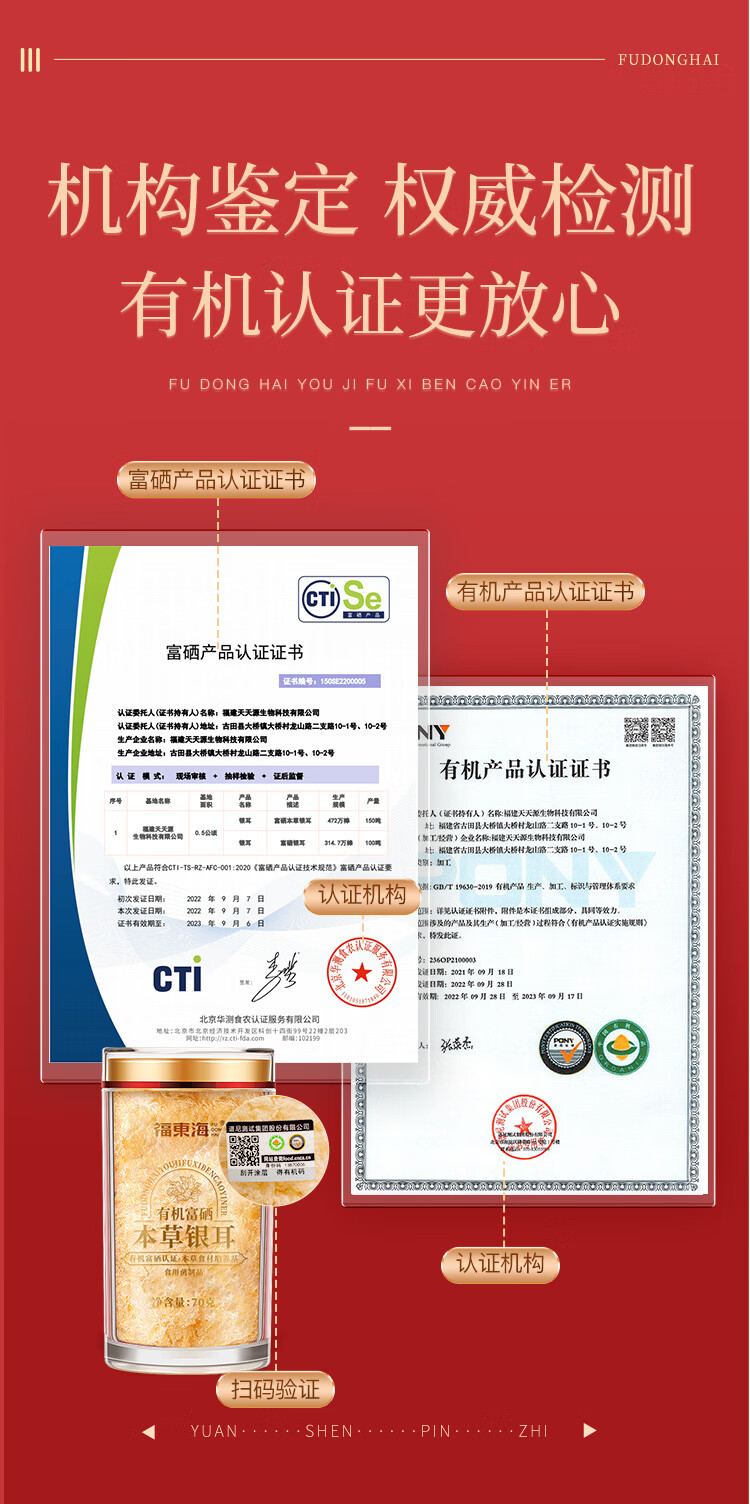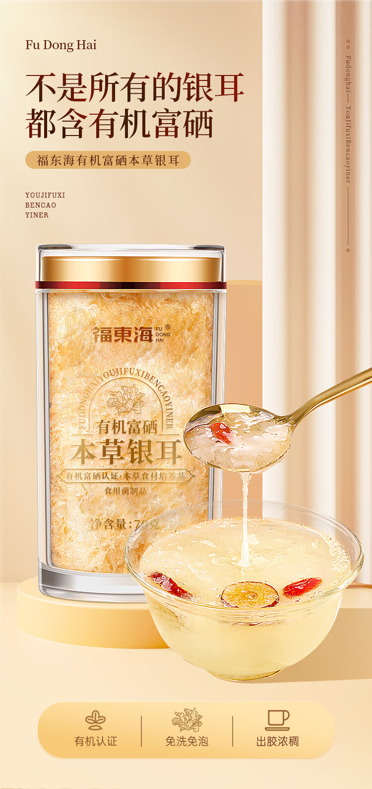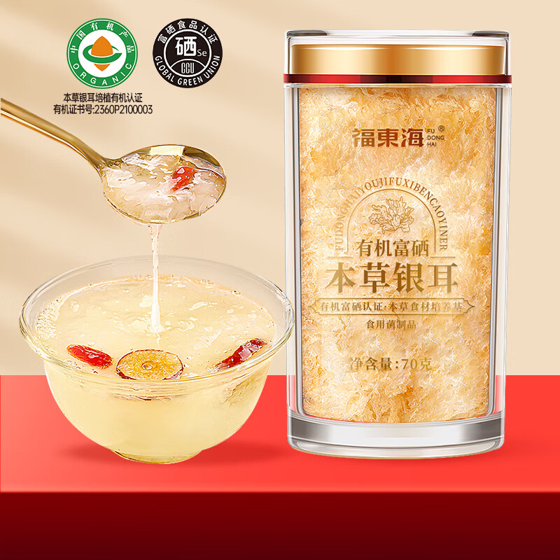 【福东海】有机富硒本草银耳70克/瓶 FDH05020046