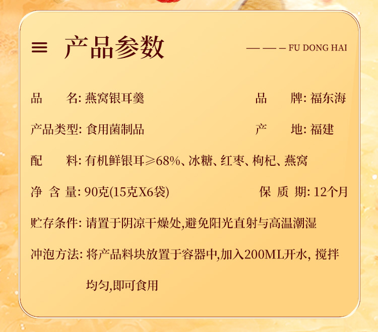 【福东海】 燕窝银耳羹 90克/盒(15克*6包) FDH06010029