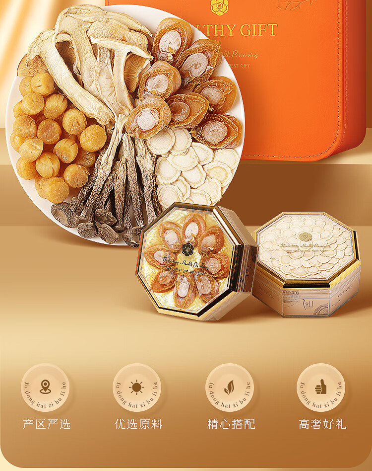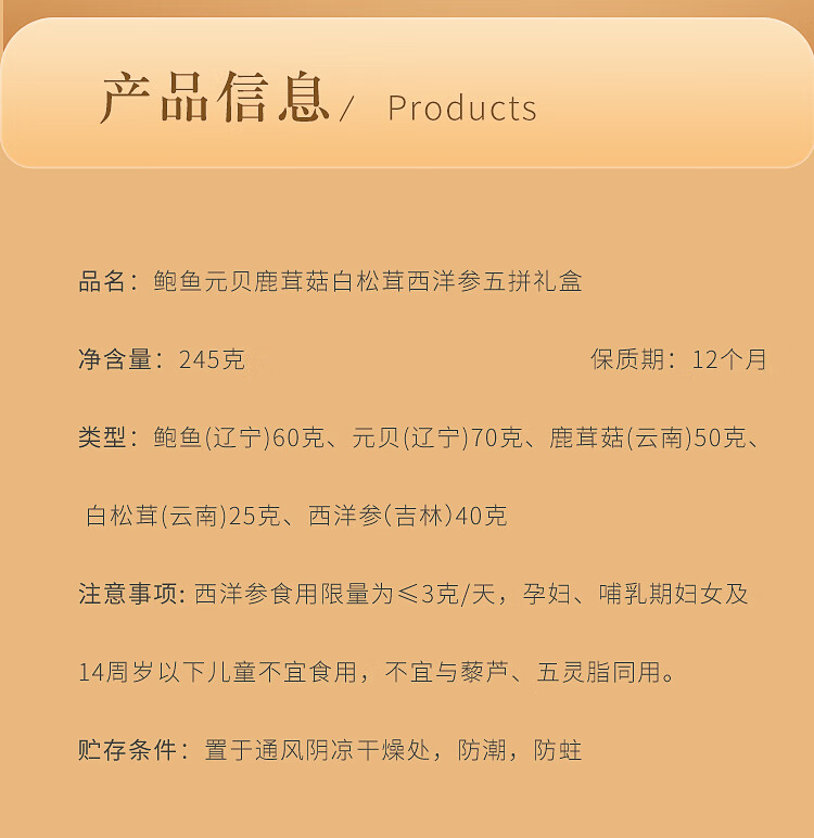 【福东海】鲍鱼元贝鹿茸菇白松茸西洋参五拼245克/盒(鲍鱼60克+元贝70克+鹿茸菇50克+白松茸25克+西洋参40克)FDH01011253