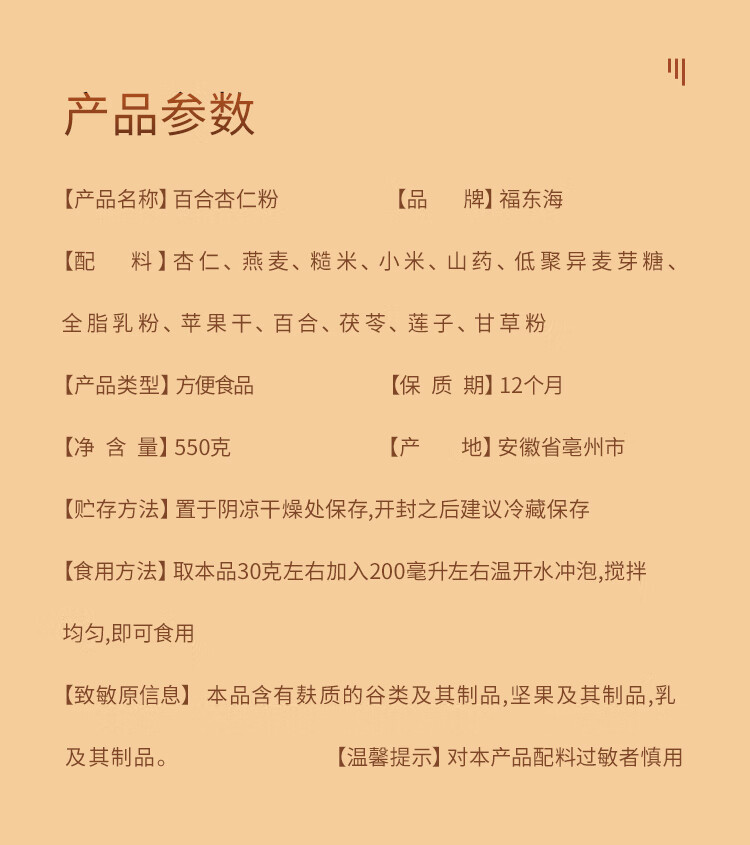 【福东海】 百合杏仁粉550克/瓶 FDH05020156
