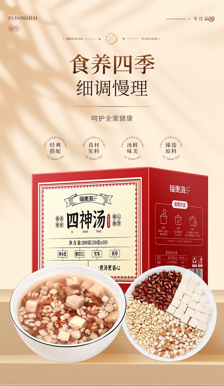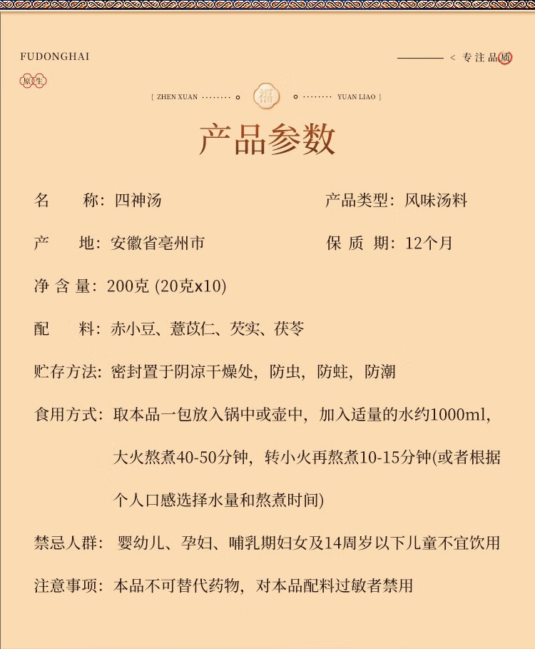 【福东海】四神汤200克(20克x10袋)/盒-新款(莲子、陈皮、山药、芡实、茯苓) FDH09010049
