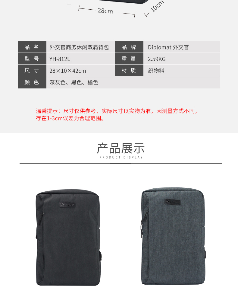 Diplomat外交官时尚休闲双肩包背包YH-812L-101(单位:个) 黑色