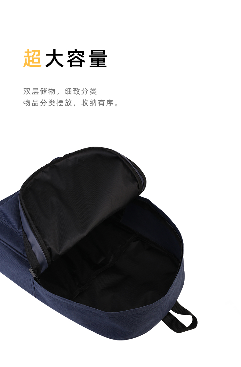 采用尼龙面料,品牌印花标识,简约不简单,1个外置拉链袋,内附主袋、夹层,透气肩带可随意调节长度,三角加固设计,分解受力,有效防止拉裂