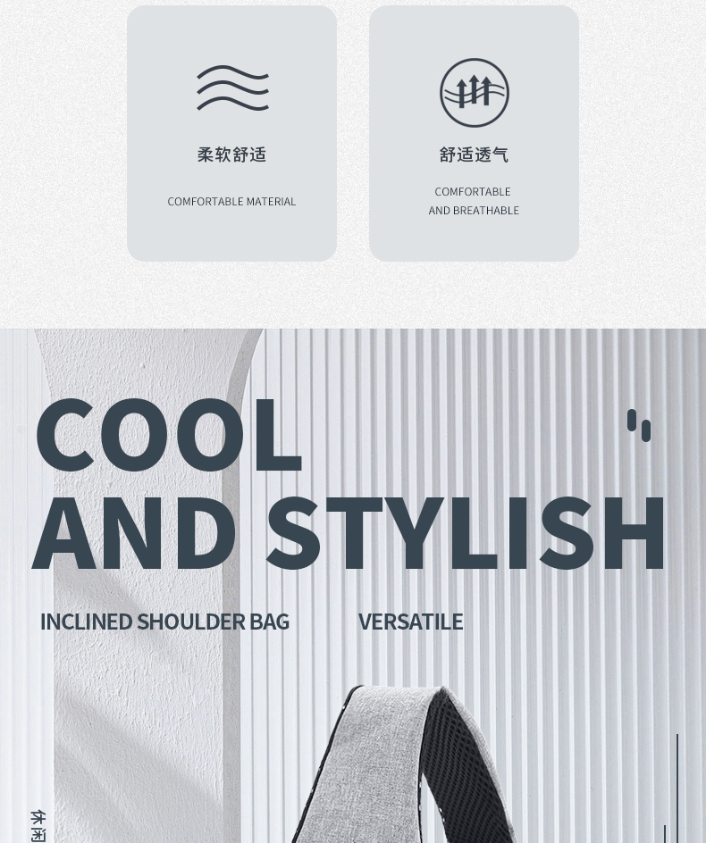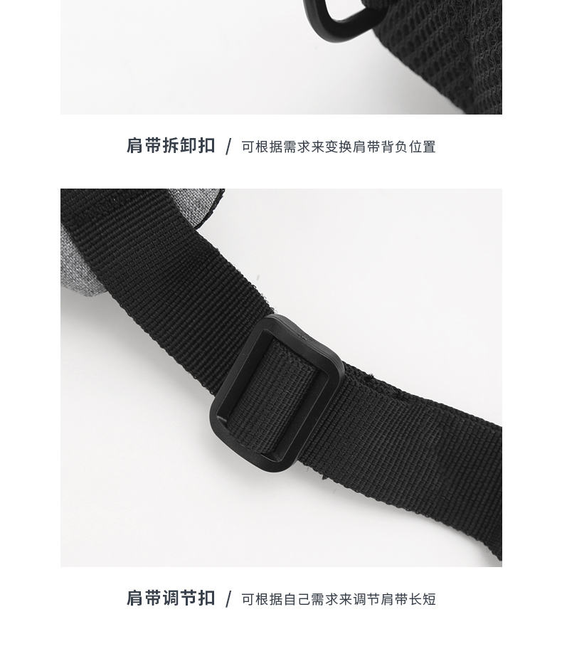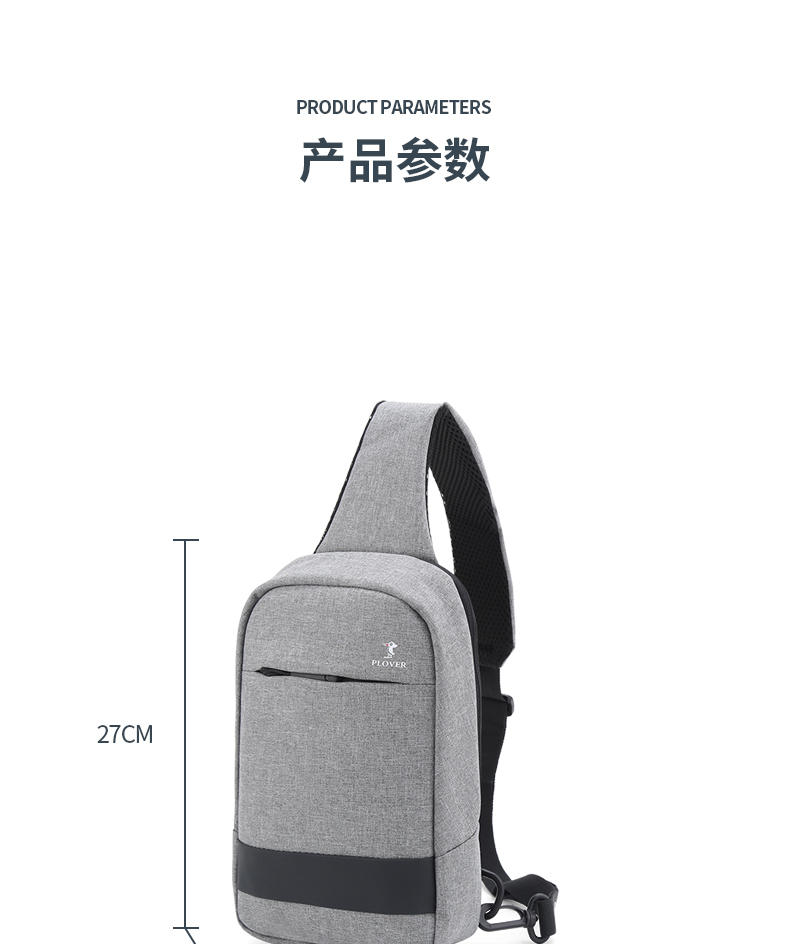简约有型,时尚百搭!胸包材质选用防水牛津布,满足日常的生活防水,整体设计轻量简便,空间充足携带灵活;主储物空间大,分区收纳的设计,小物品的取放也方便。非常适合短途出行,户外休闲或者上下班通勤都很适合。选一款胸包轻装上阵,出行才不会有负担!