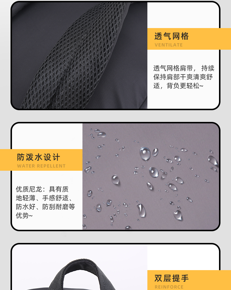 这款休闲包采用优质尼龙防泼水面料,轻巧耐磨。质感顺滑拉链布耐磨损,咬合紧密。透气减负肩带,科学减负、缓解压力,内里空间设计合理,容量张弛有度,让你出行无忧。