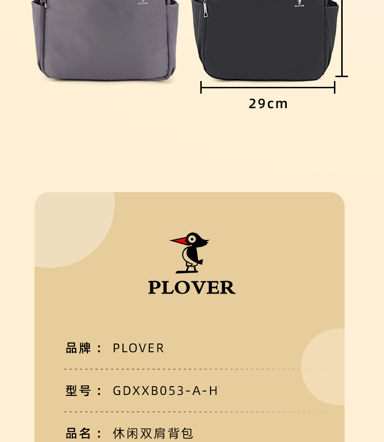 • PLOVER香港啄木鸟时尚质感双肩背包 GDXXB053
