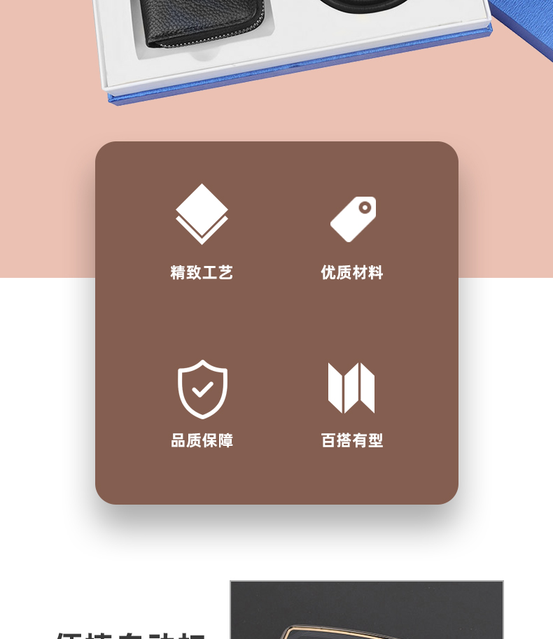 卡包选用细腻舒适的头层牛皮,撞色的缝线,耐磨不掉皮,对工艺精益求精,带身使用PVC,扣头采用锌合金真空电镀,亚克力磨砂片贴片,带身外部采用热压logo工艺;