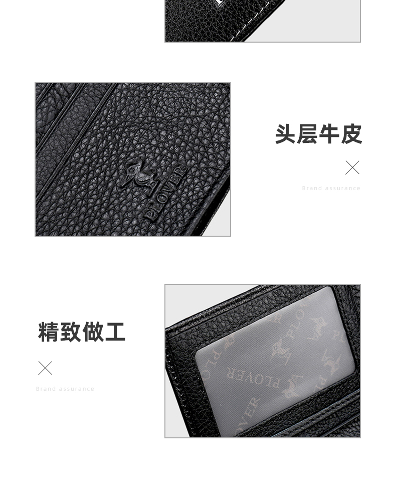 长夹精选头层牛皮制作,皮纹清晰而细腻,车缝线和LOGO,采用撞色搭配,醒目时尚,展现英伦风采带身使用二层牛皮,十字纹皮带侧边车线+油边工艺美观且耐用,外包装使用高档木质礼盒