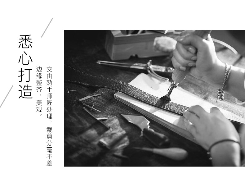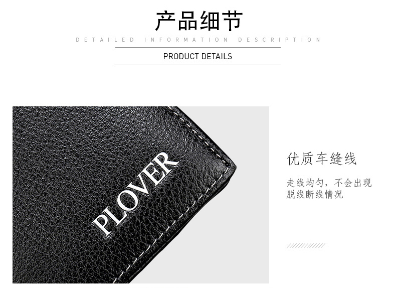钱夹精选头层牛皮,舒适耐磨,大面丝印品牌logo,多功能内袋设计,带身选用头层牛皮,扣头采用锌合金真空电镀,带身尾部采用热压logo工艺;