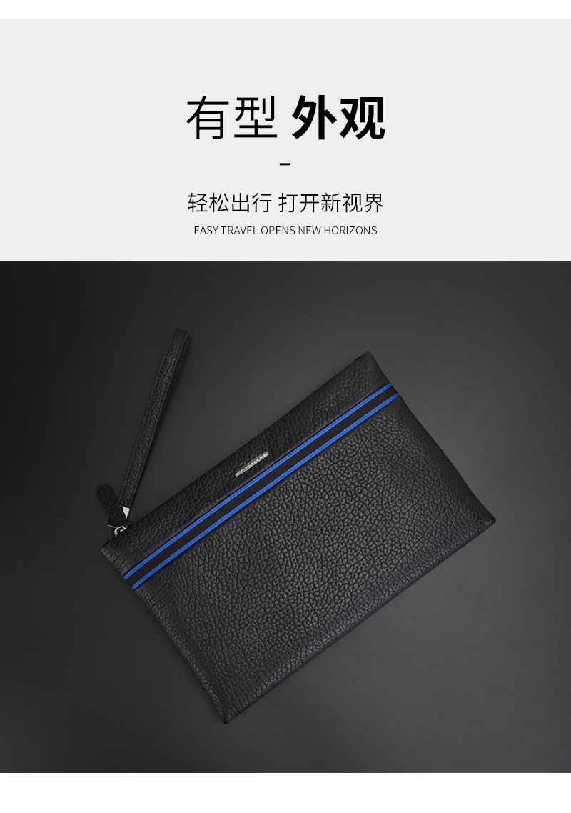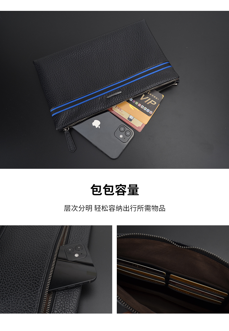 袋型尺寸沿用经典尺寸,头层牛皮的优雅纹路和舒适手感,让人欣喜连连,爱不释手,前幅蓝条织带,让包形更显时尚和潮流气息,包包的手工精细,车缝优美如艺术品,内袋做工更显人性化!对现代生活做了体贴的设计安排,让你拿上它,自信心和喜悦之情油然而生。