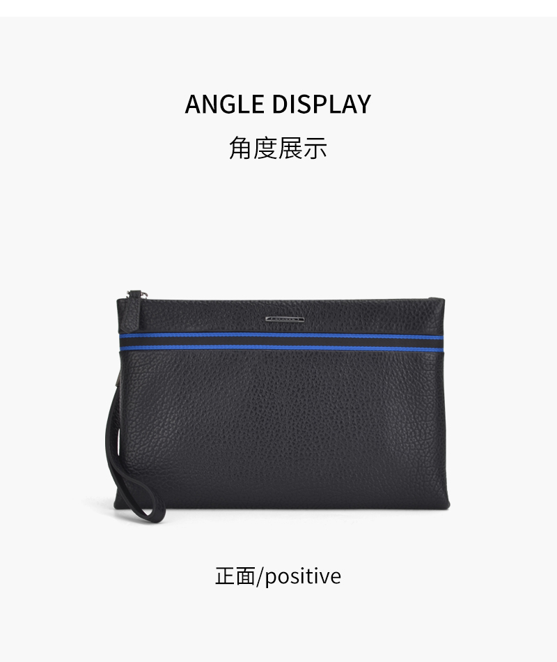 PLOVER香港啄木鸟蓝条织带牛皮夹包 GDYB024-A