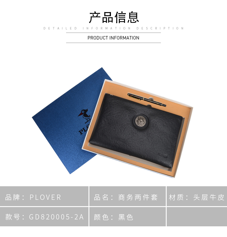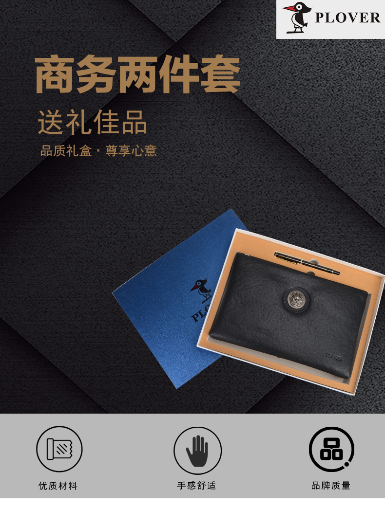 PLOVER香港啄木鸟头层牛皮夹包笔套装礼盒 GD820005-2A
