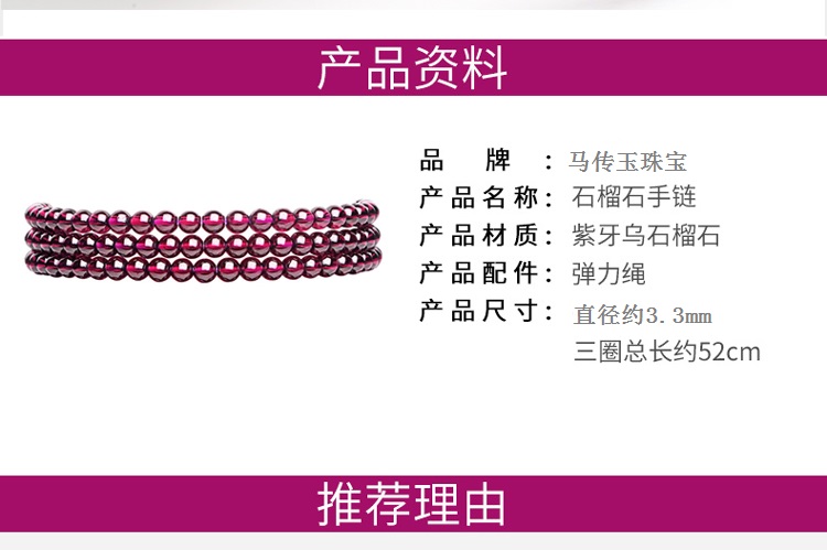 馬传玉 紫牙乌石榴石手串MCY036(三圈手串长约52cm,珠直径约3.3mm)