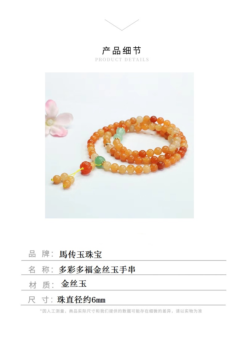 馬传玉 多彩多福金丝玉手串6mm MCY087