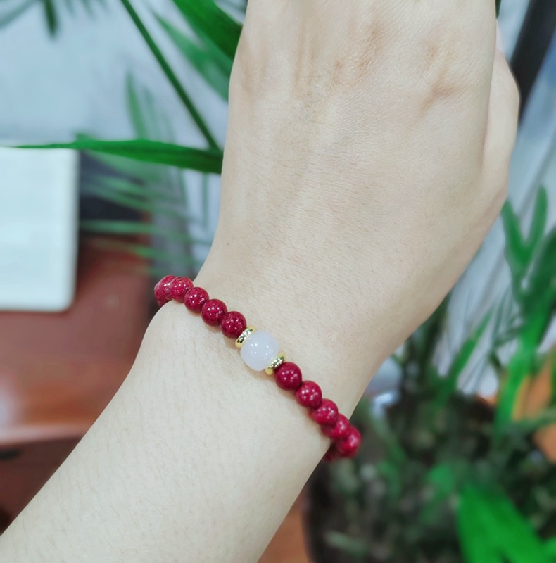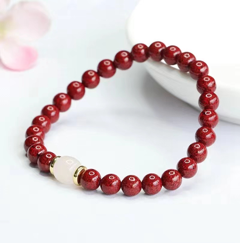 馬传玉 晶体砂金丝玉朱砂手串6mm MCY092