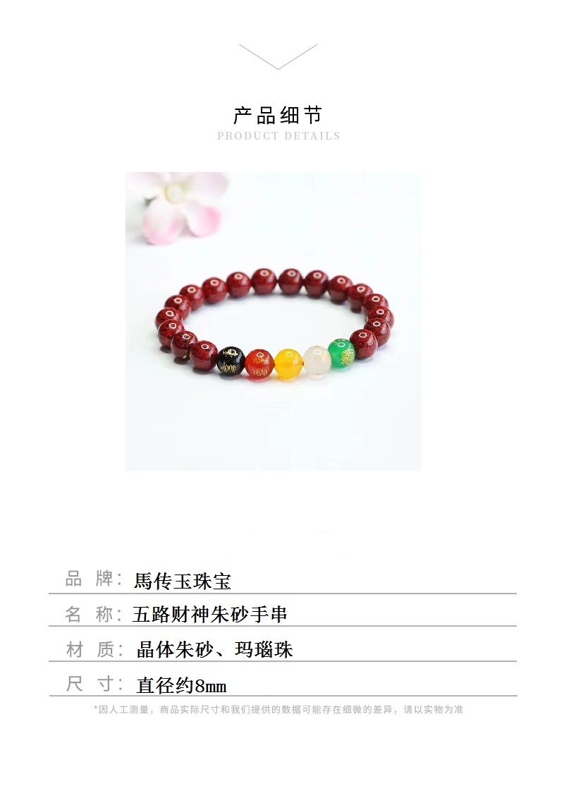 馬传玉 晶体砂五路财神朱砂手串8mm MCY094