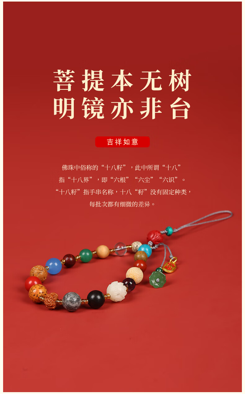 馬传玉五台山十八籽手机链 弹力绳常规圈口 MCY109