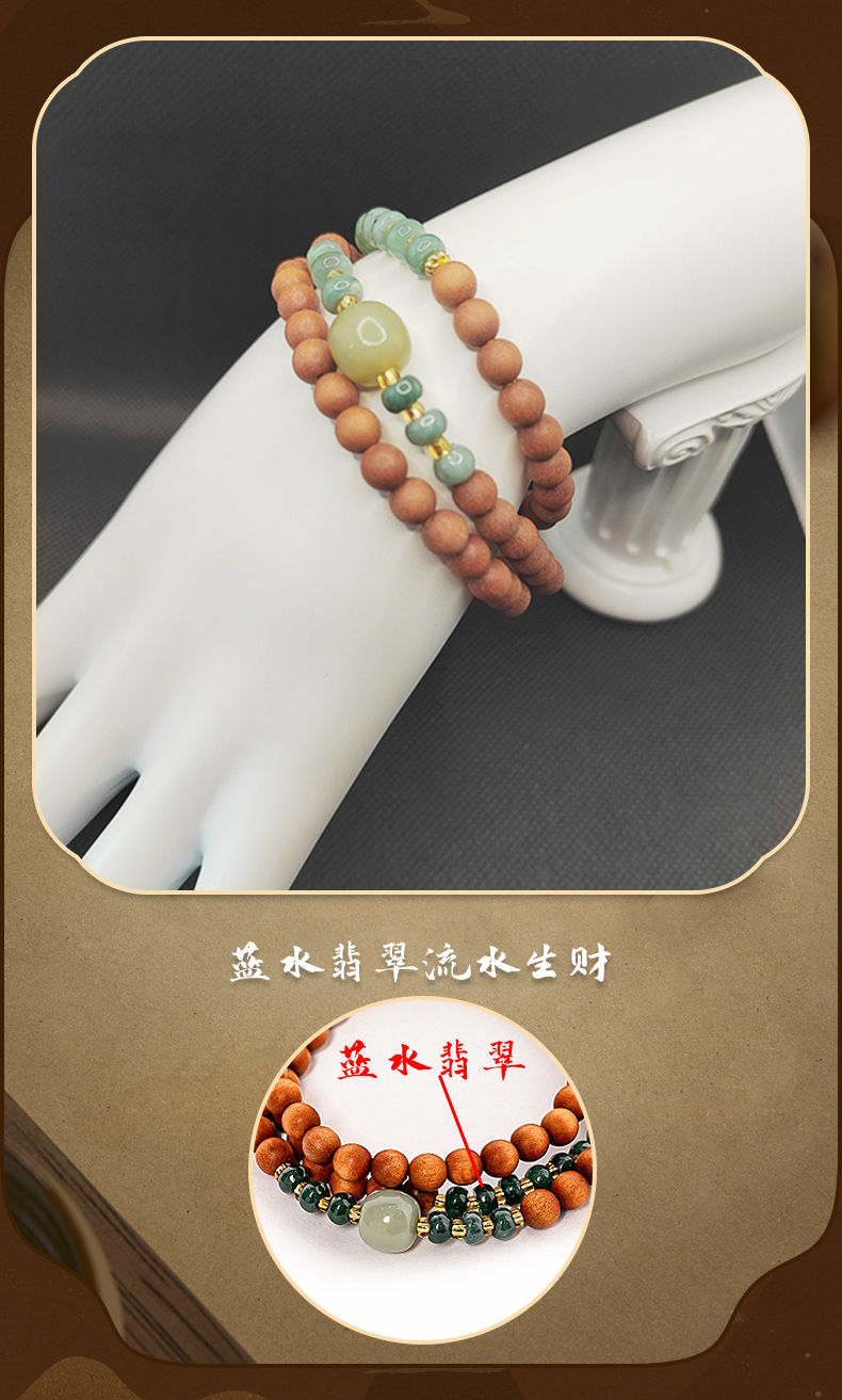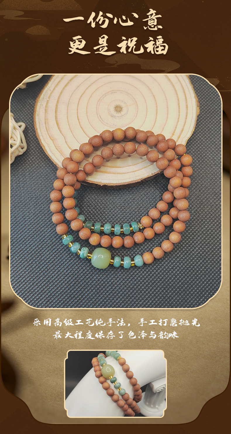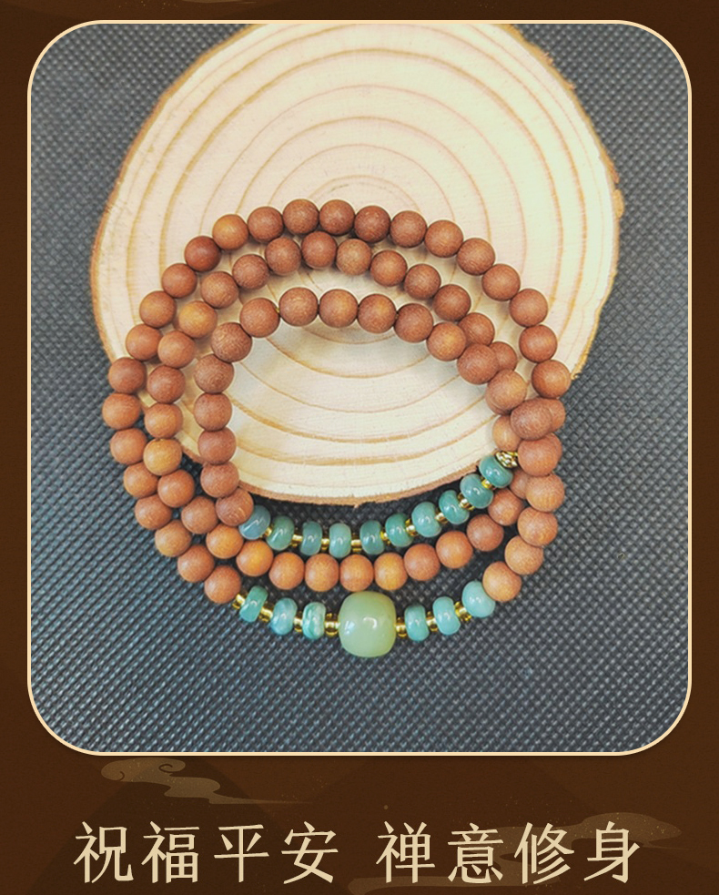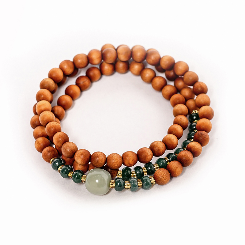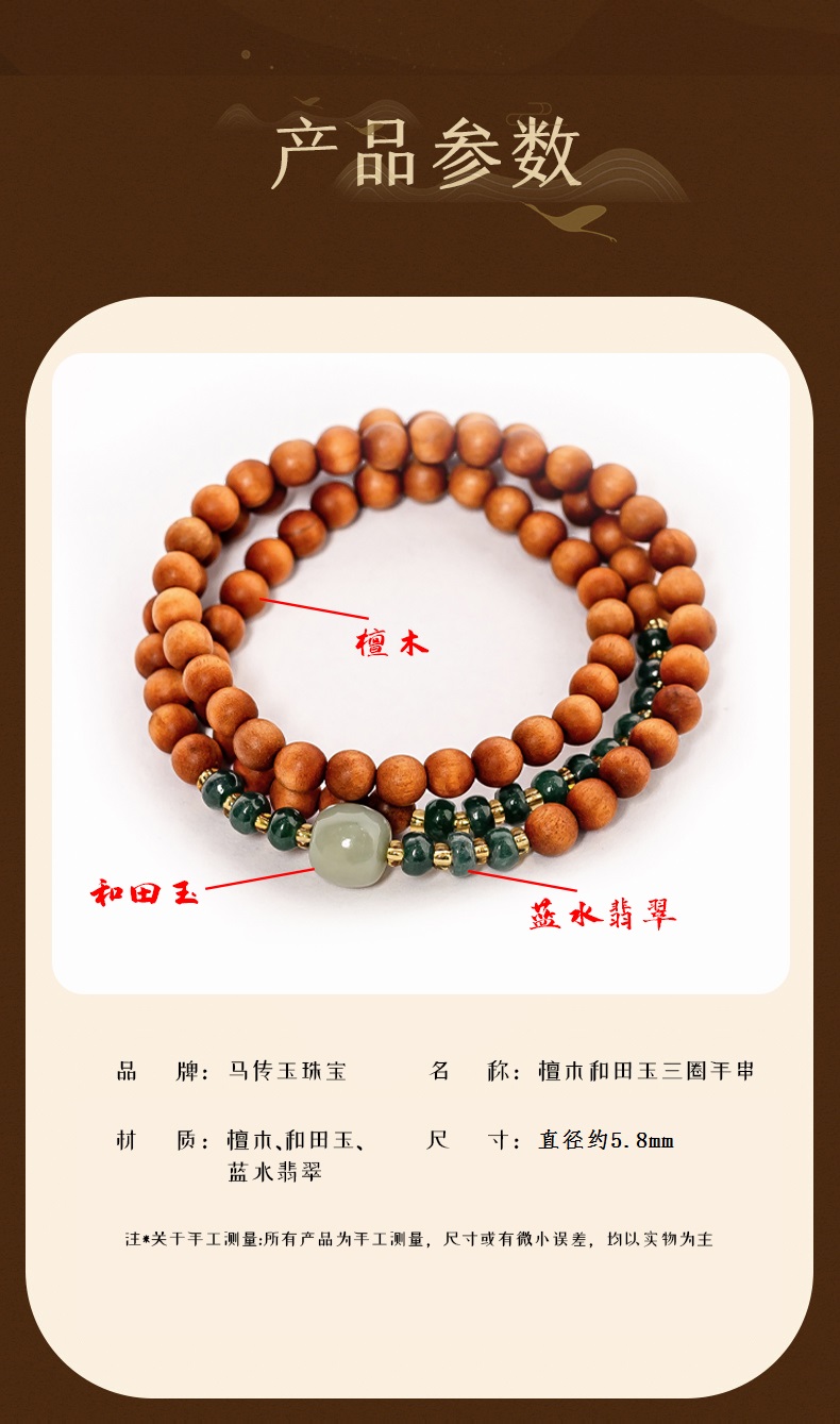 馬传玉 檀木和田玉三圈手串(檀木直径约5.8mm)MCY043