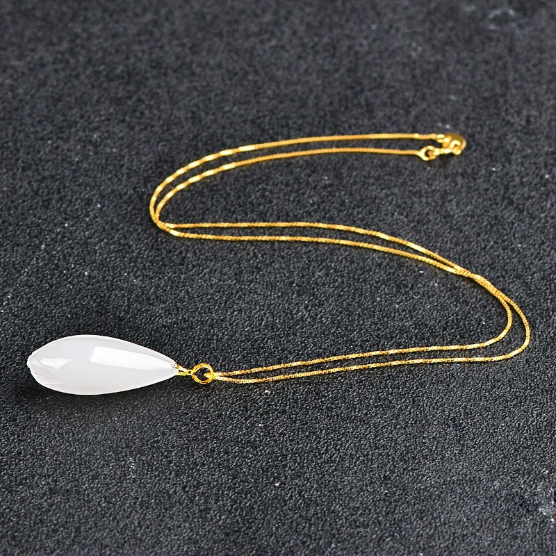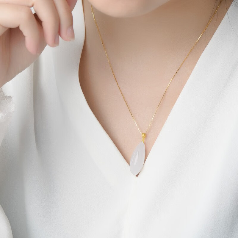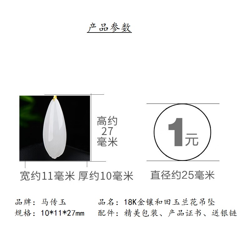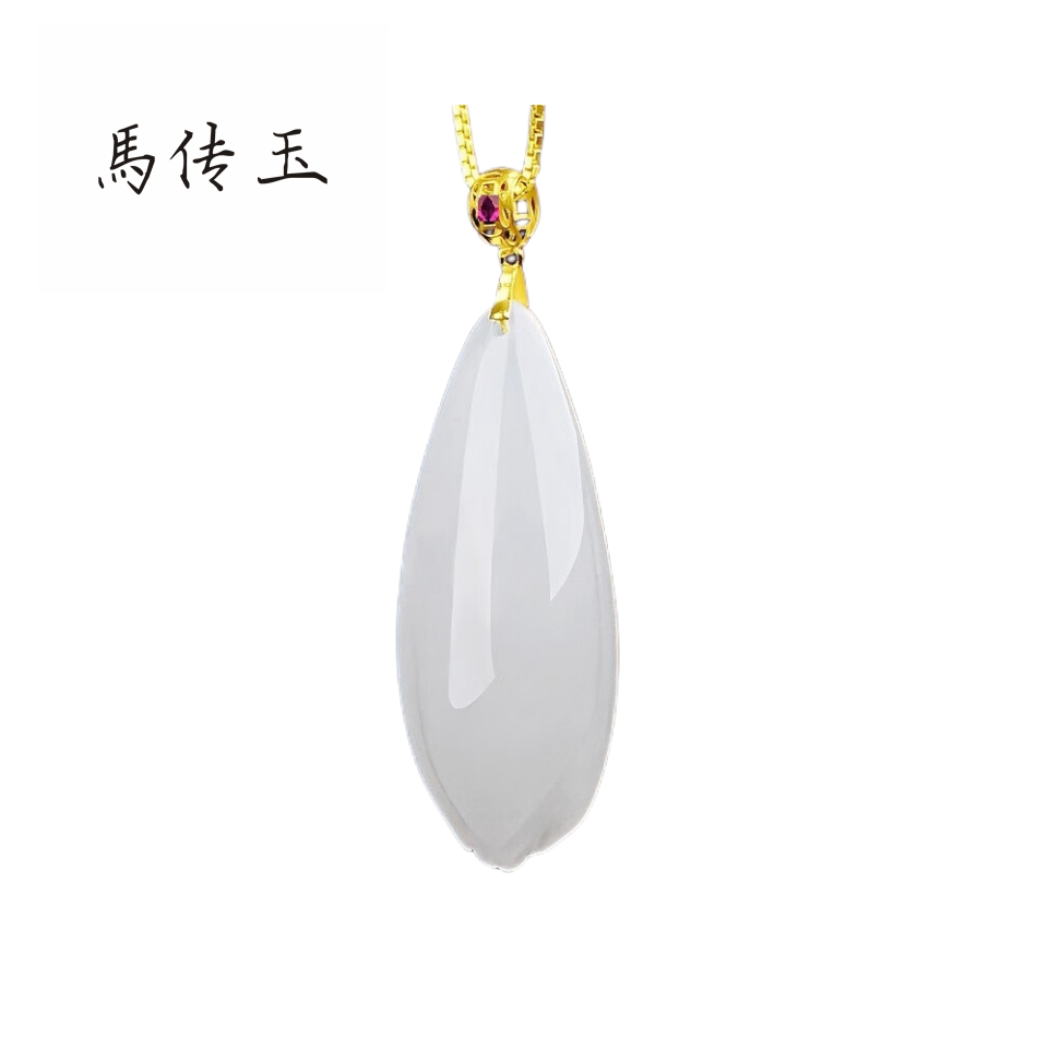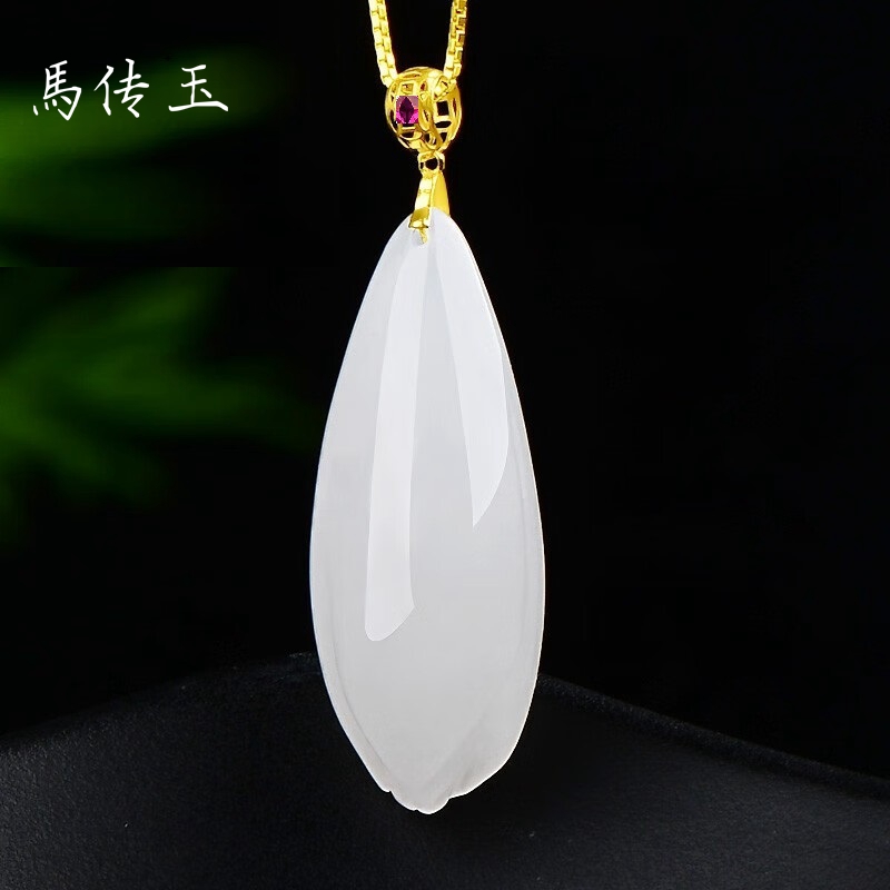 馬传玉 18K金镶和田玉兰花吊坠送银链 MCY017