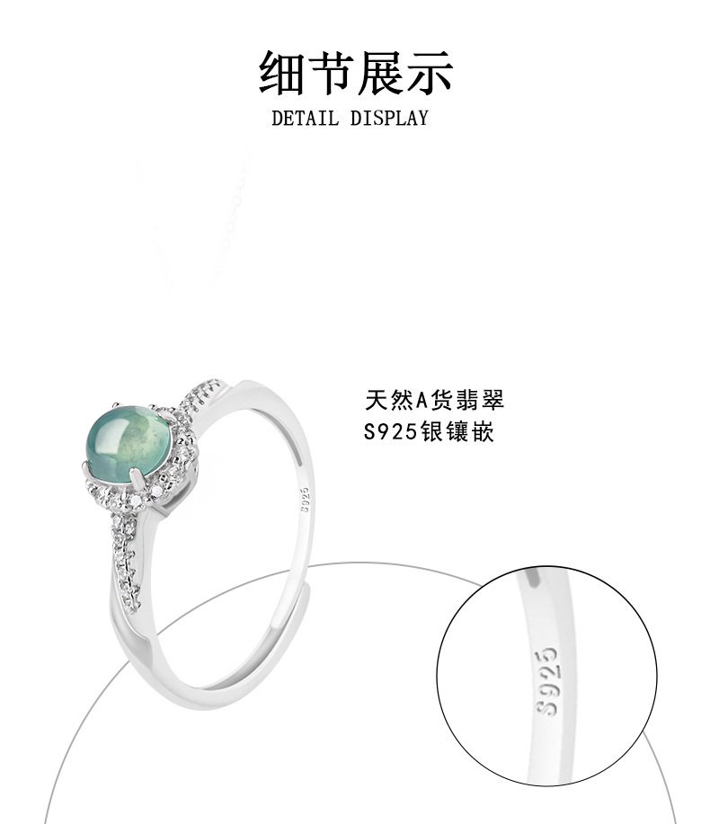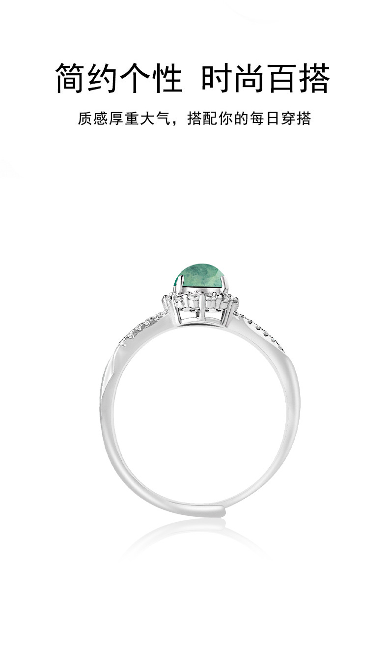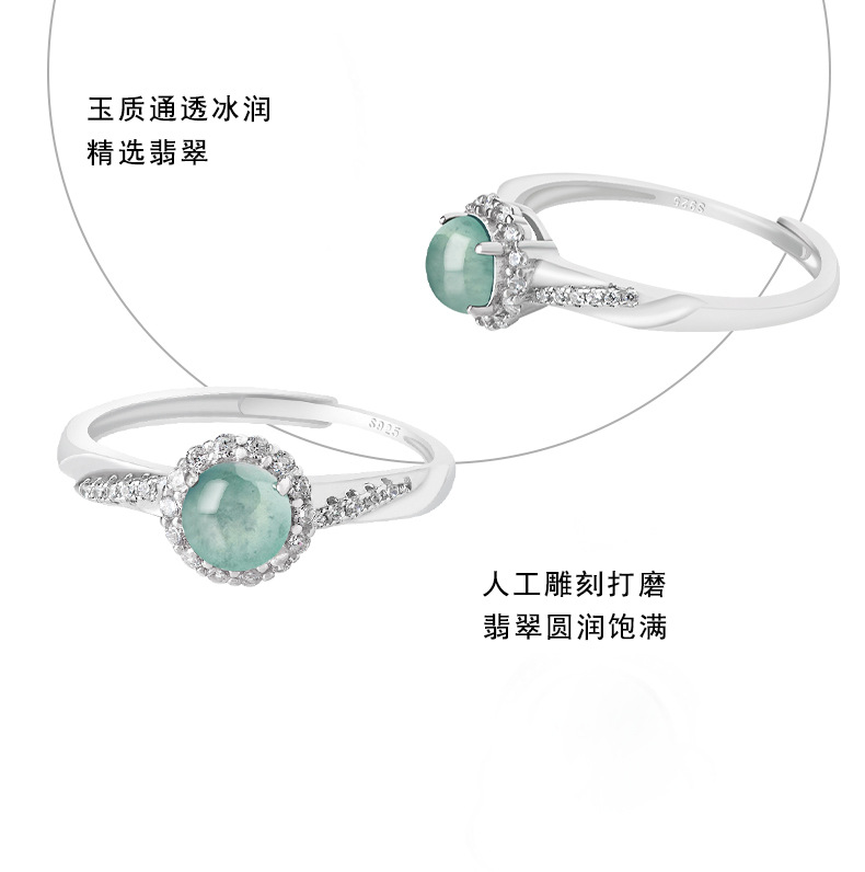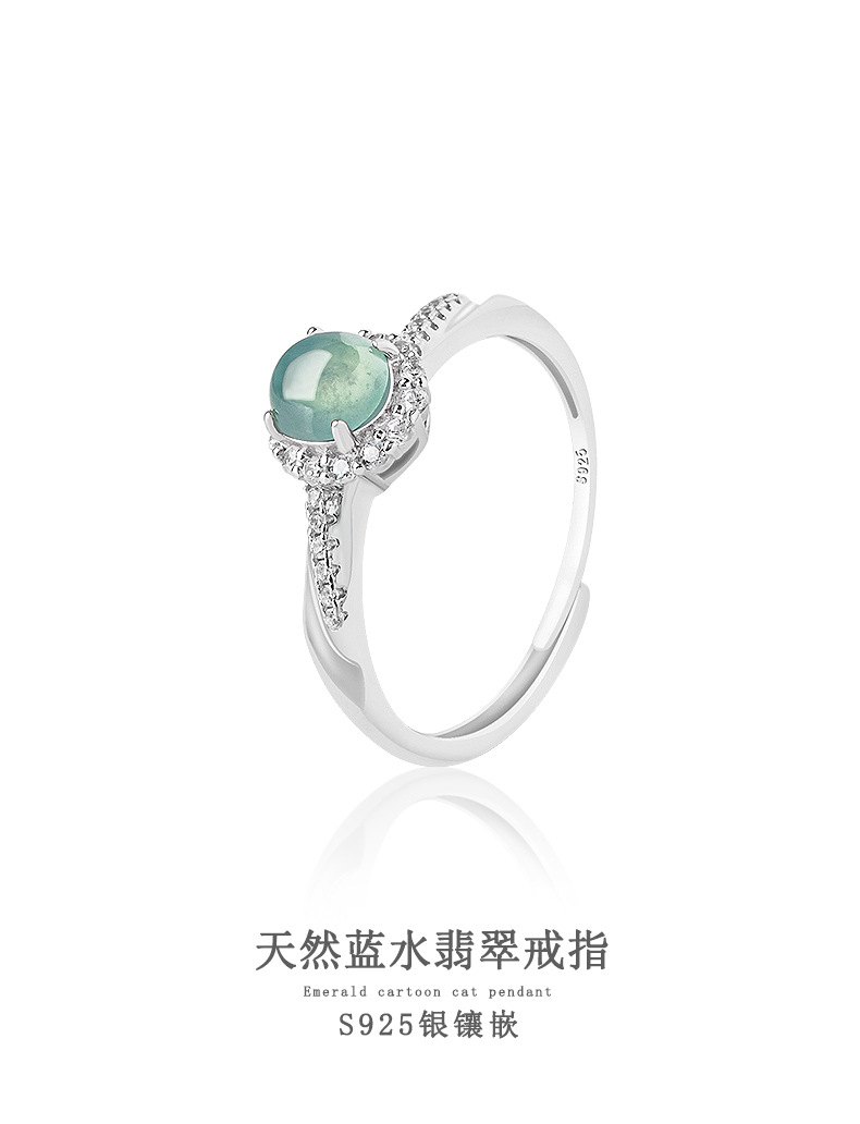 馬传玉 天然蓝水翡翠蛋面戒指 MCY114