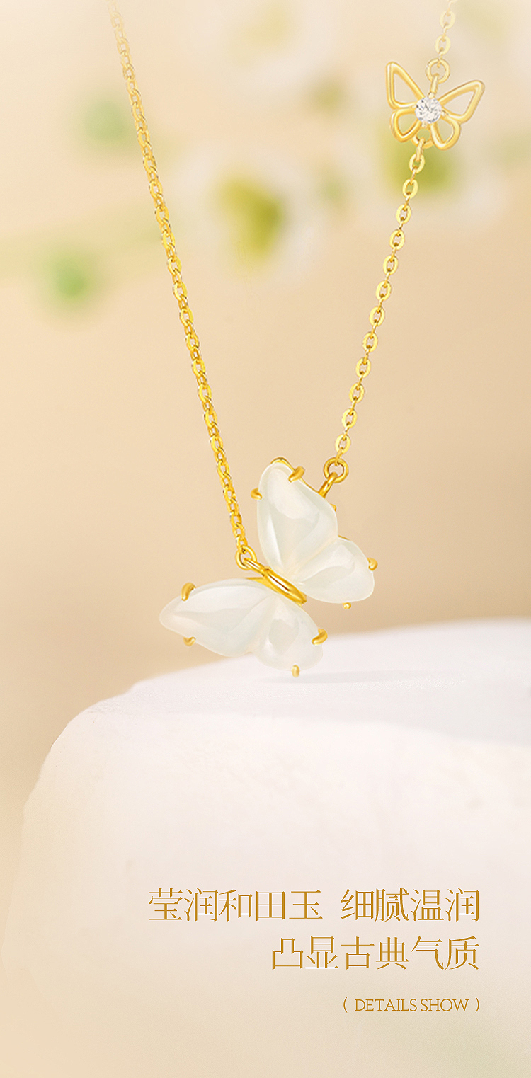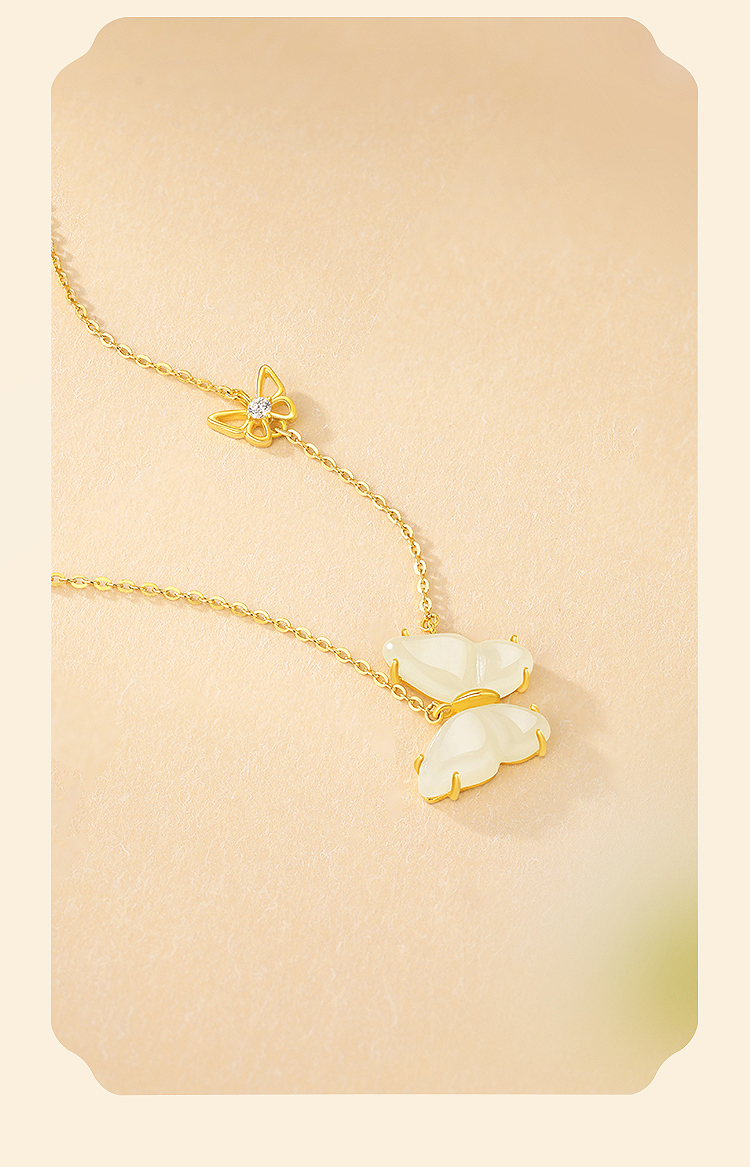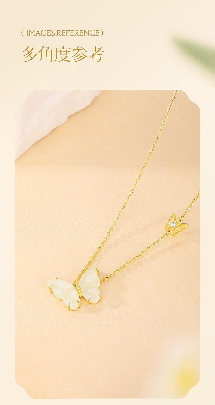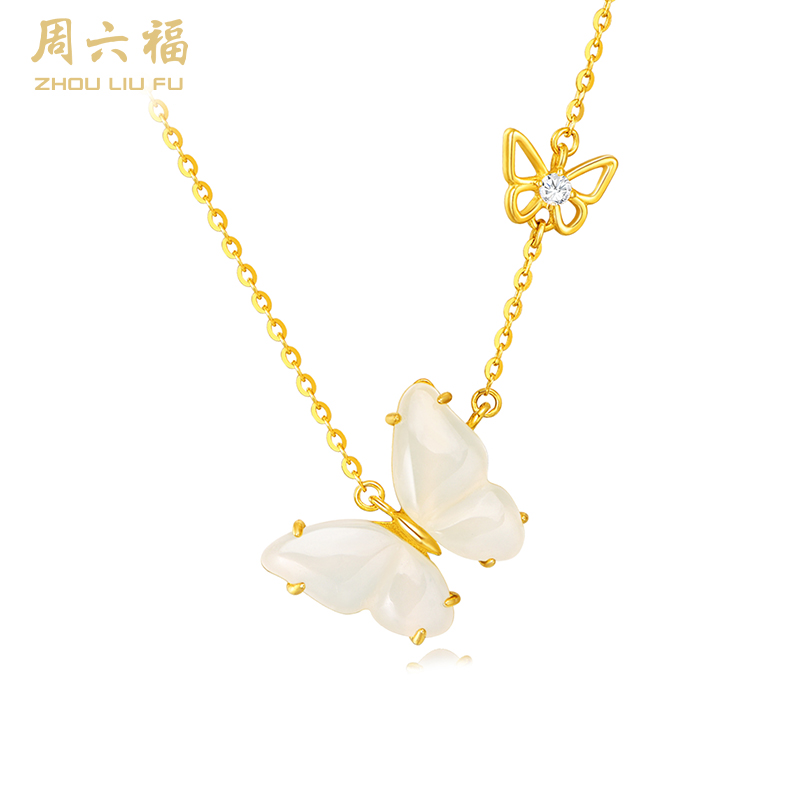 周六福S925银蝴蝶落梦和田玉套链 ZLFJ062312