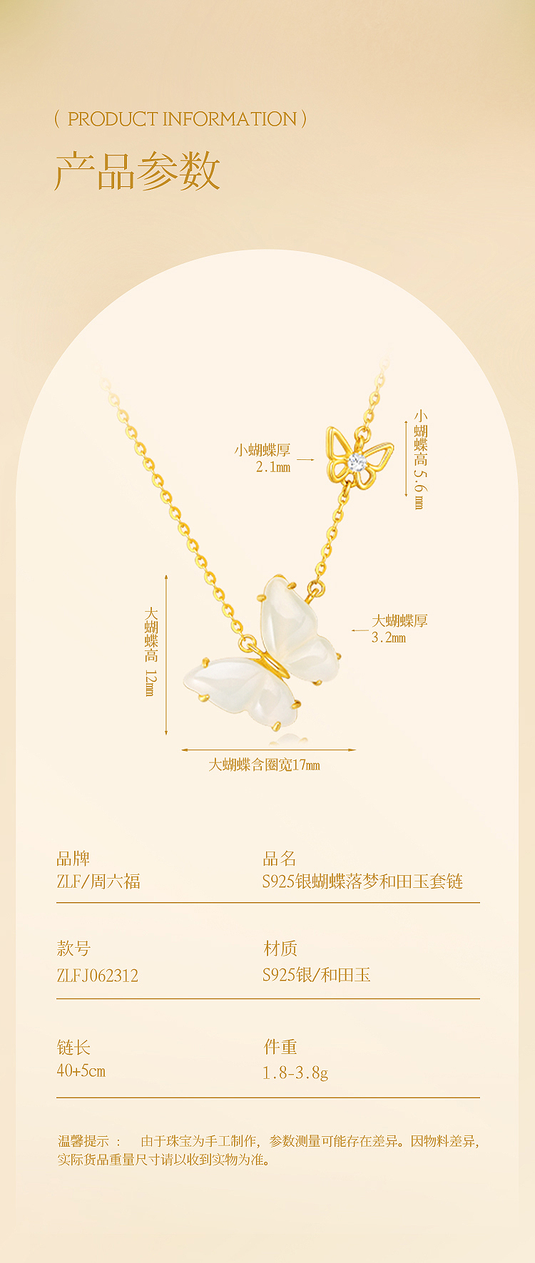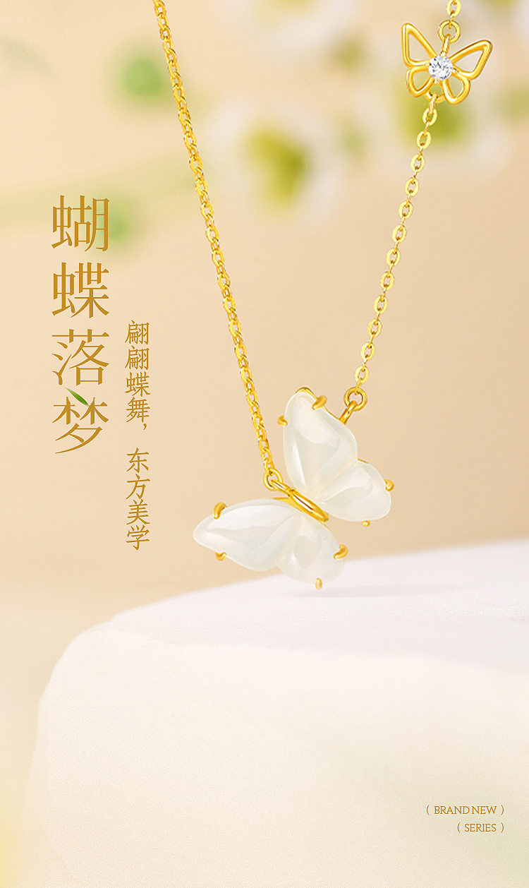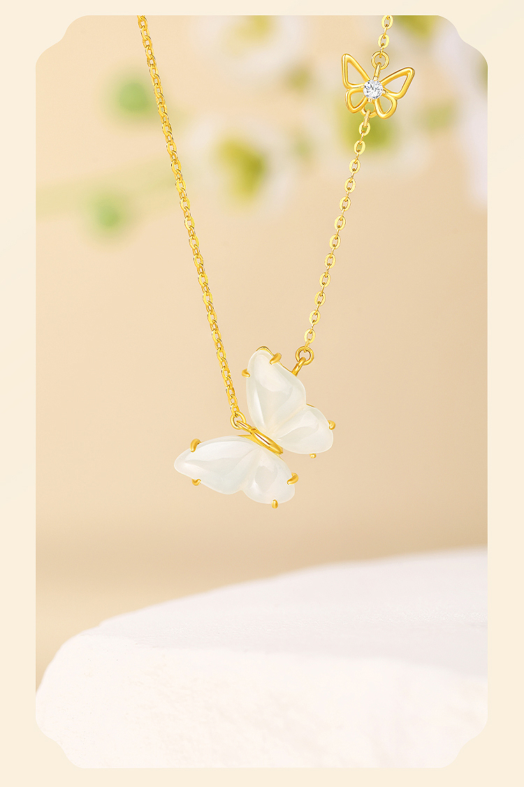 周六福S925银蝴蝶落梦和田玉套链 ZLFJ062312