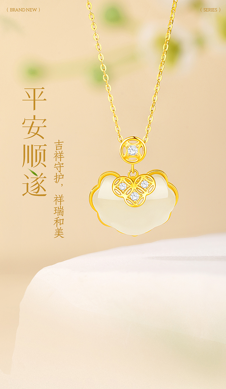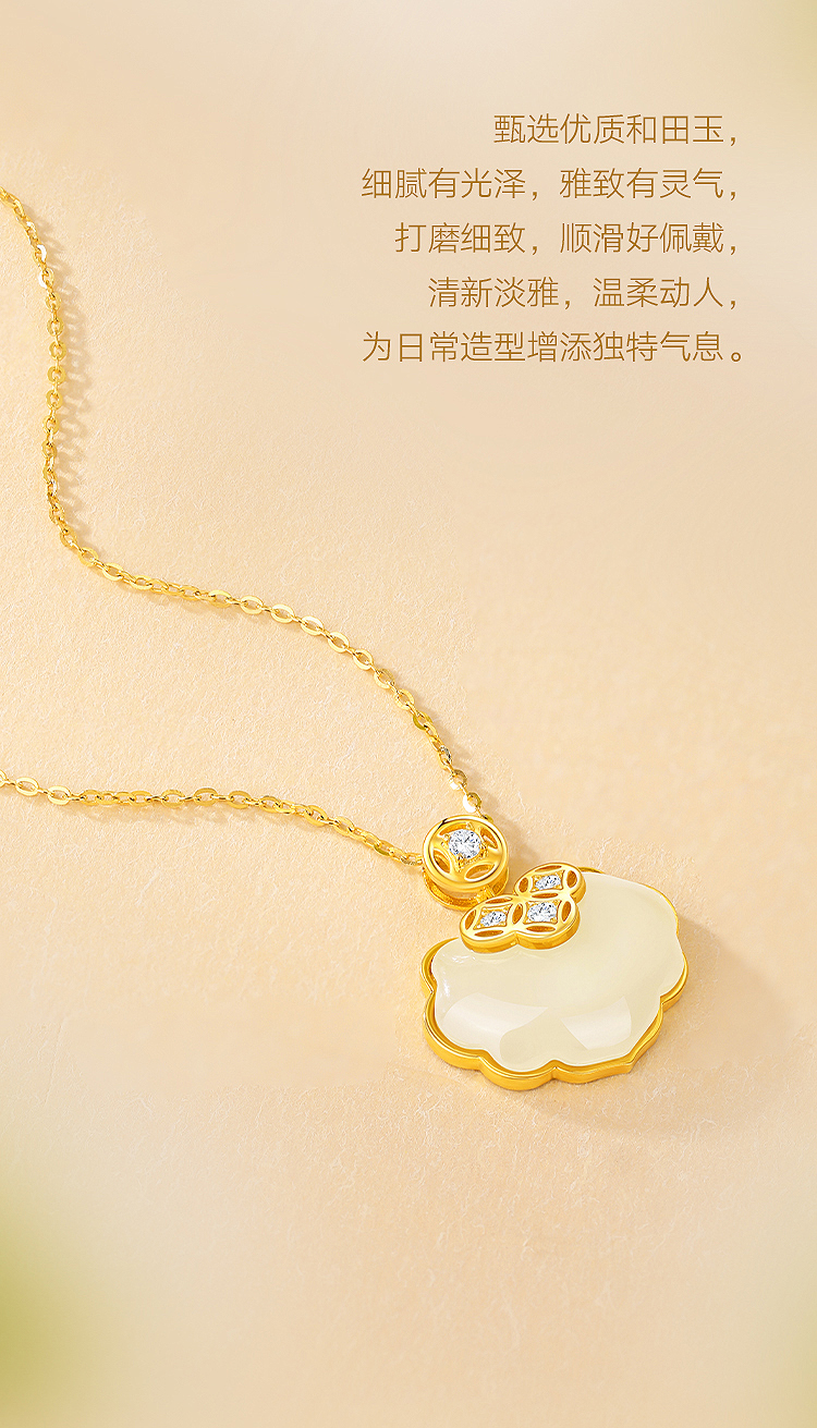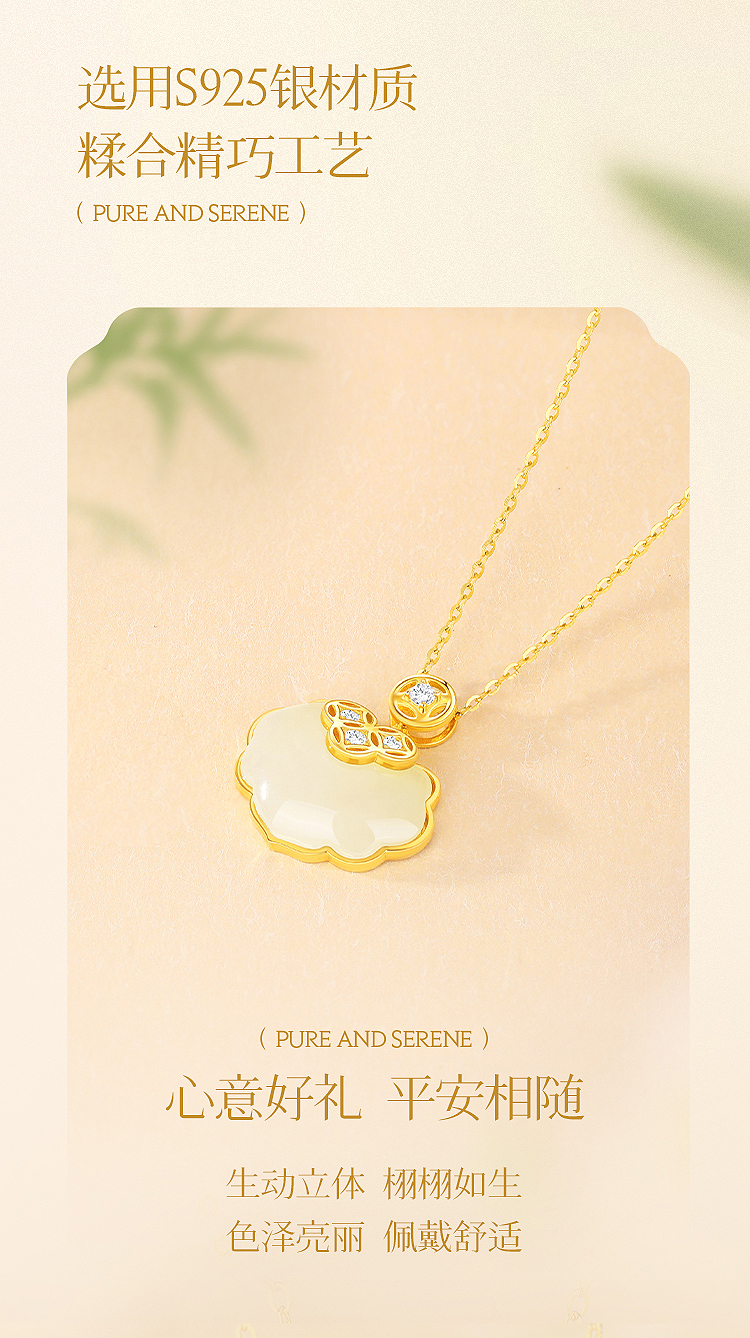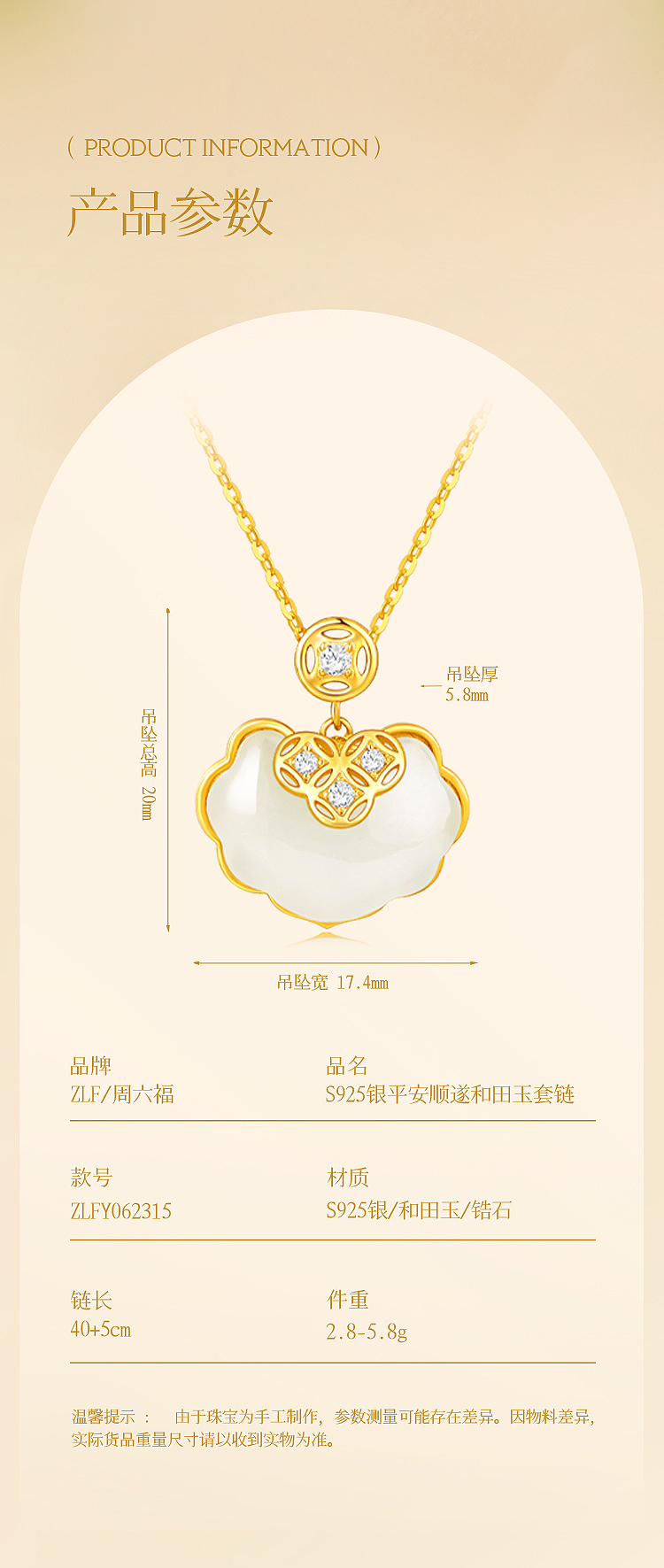 周六福S925银平安顺遂和田玉套链 ZLFY062315