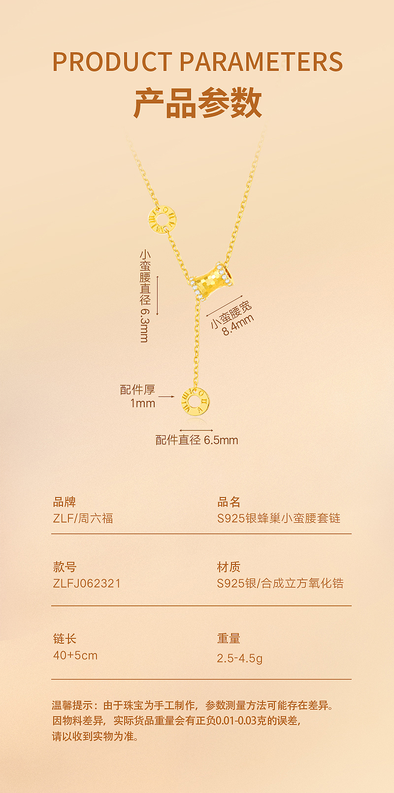 周六福S925银蜂巢小蛮腰套链 ZLFJ062321