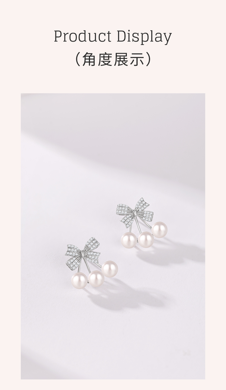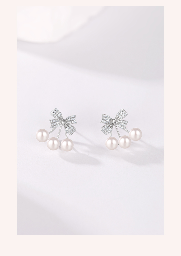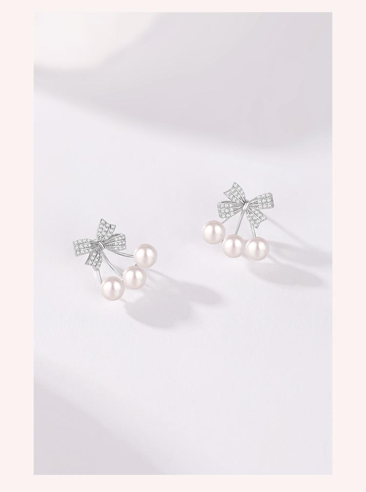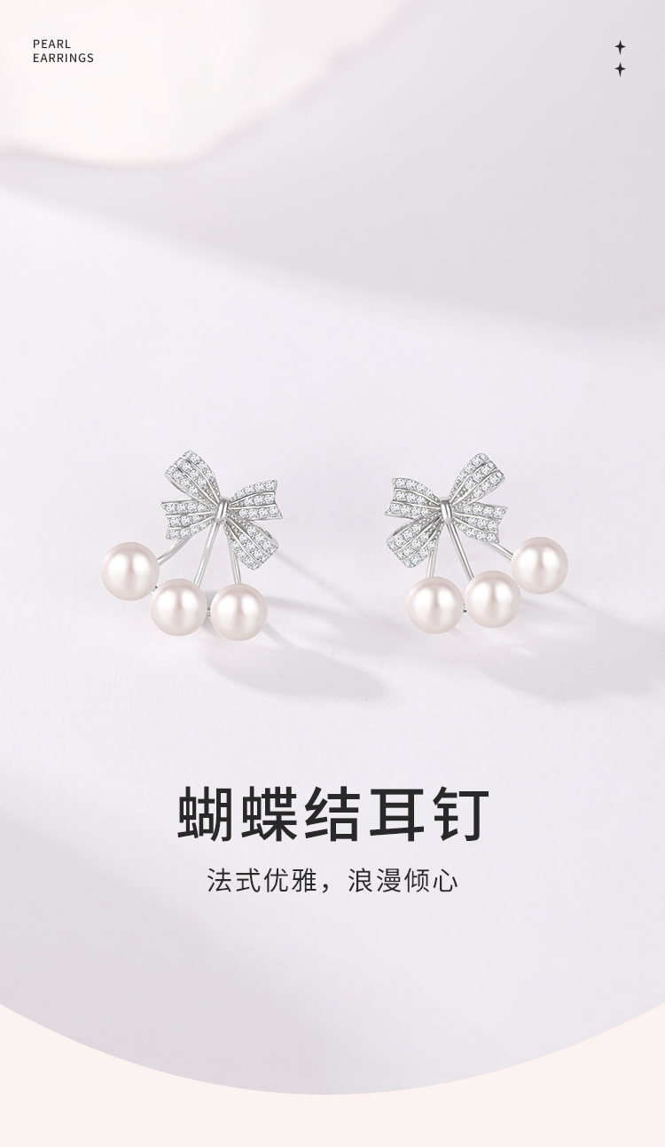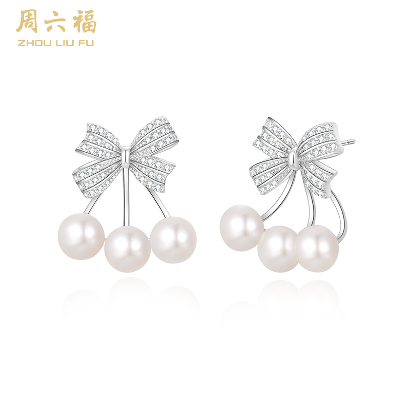周六福S925银莹润蝴蝶结珍珠耳钉 ZLFX092366