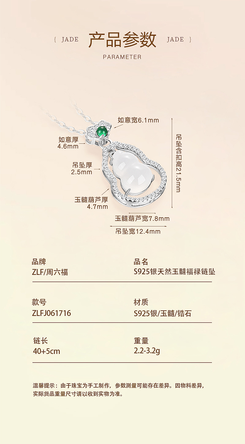 周六福天然玉髓福禄链坠 ZLFJ061716