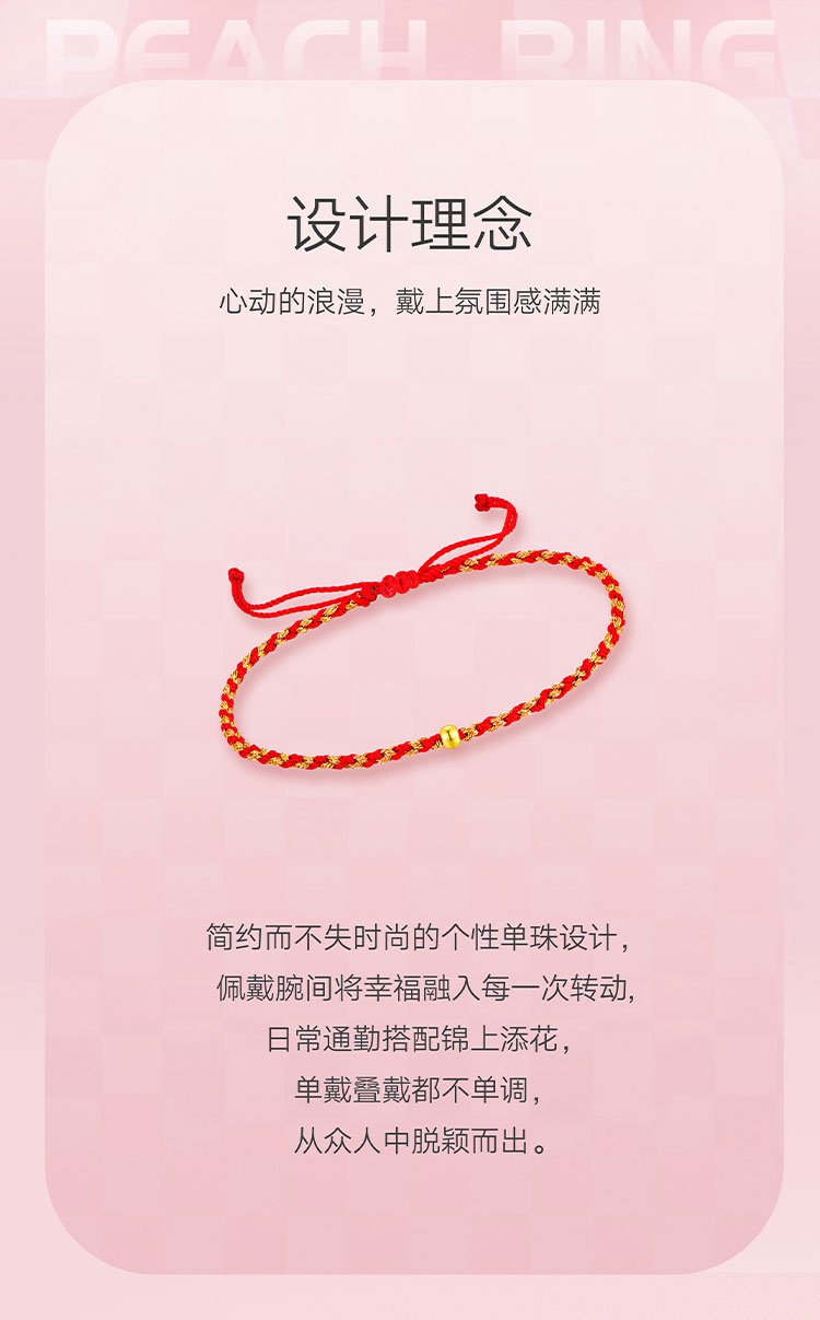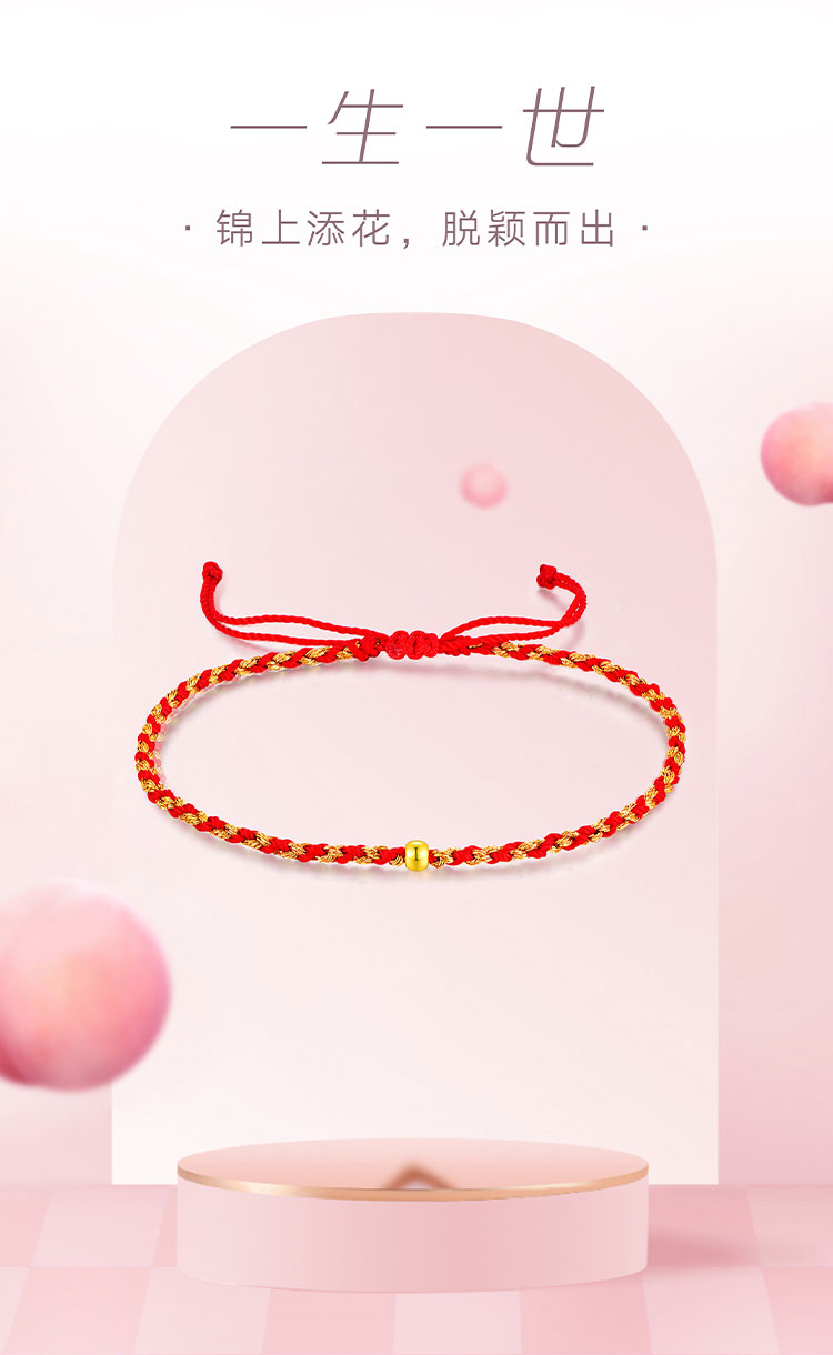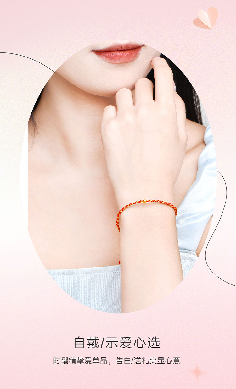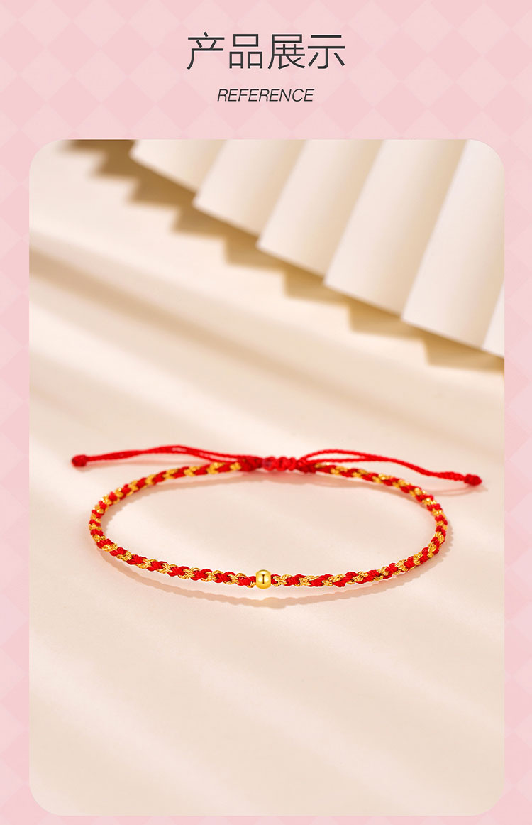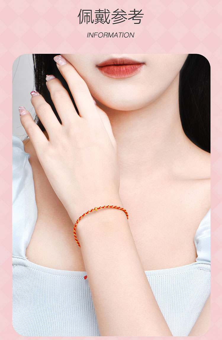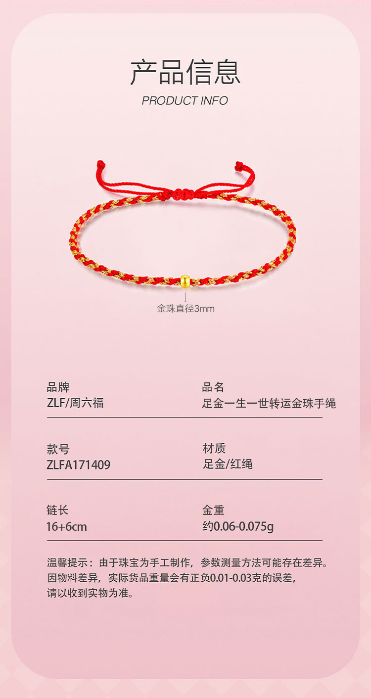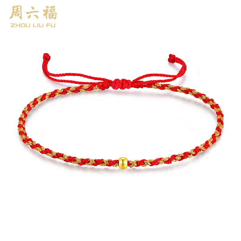 周六福足金一生一世转运金珠手绳 ZLFA171409