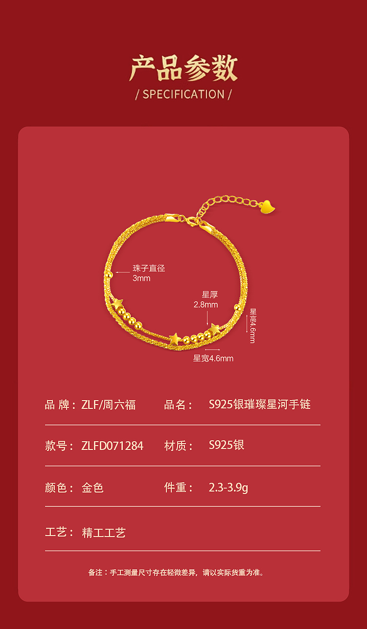 周六福S925银璀璨星河手链 ZLFD071284