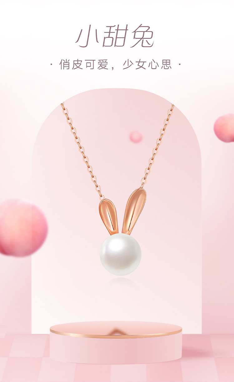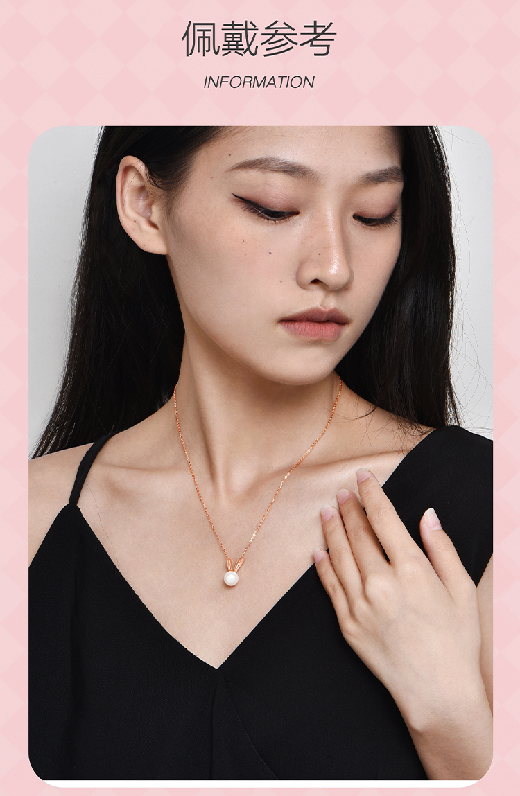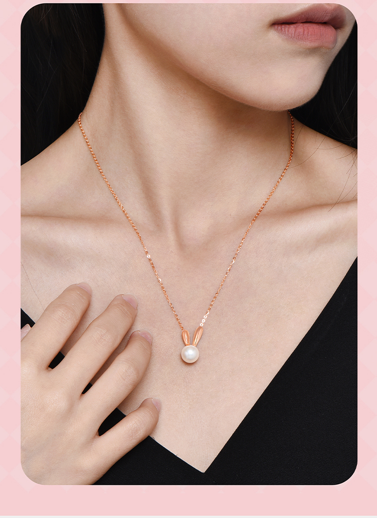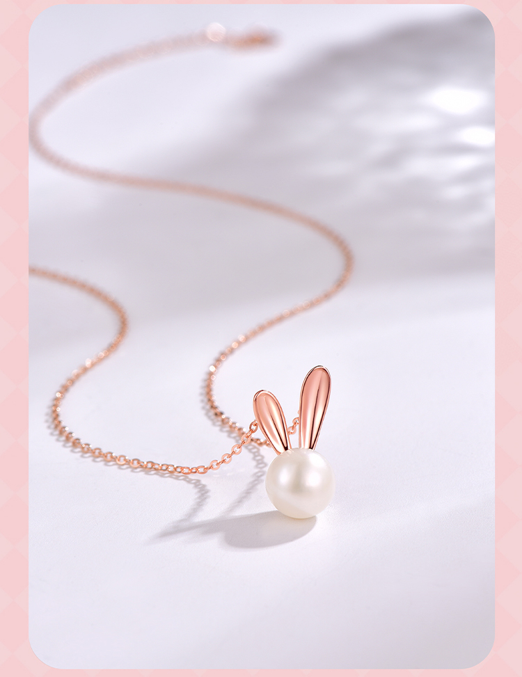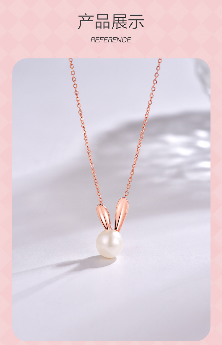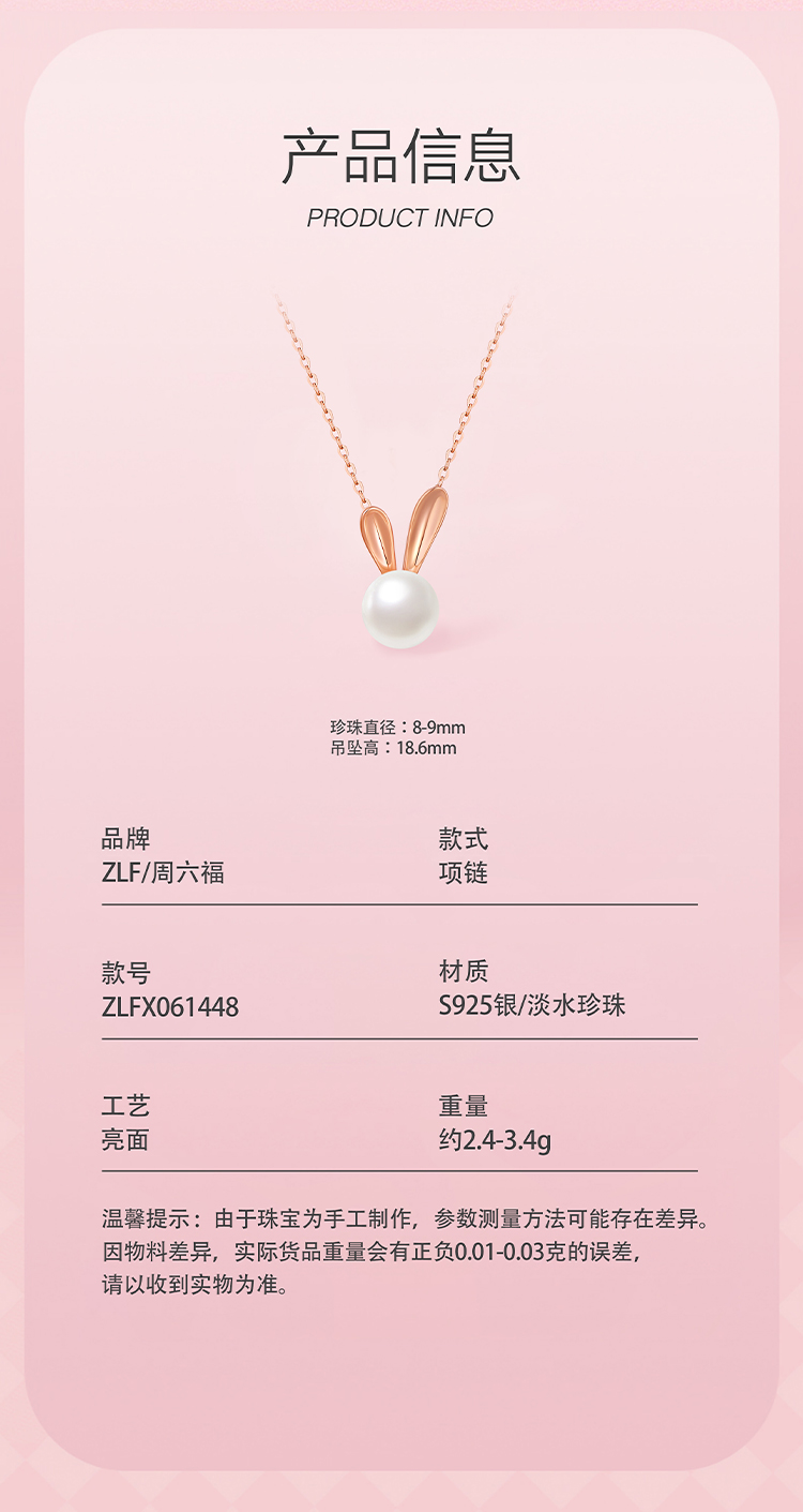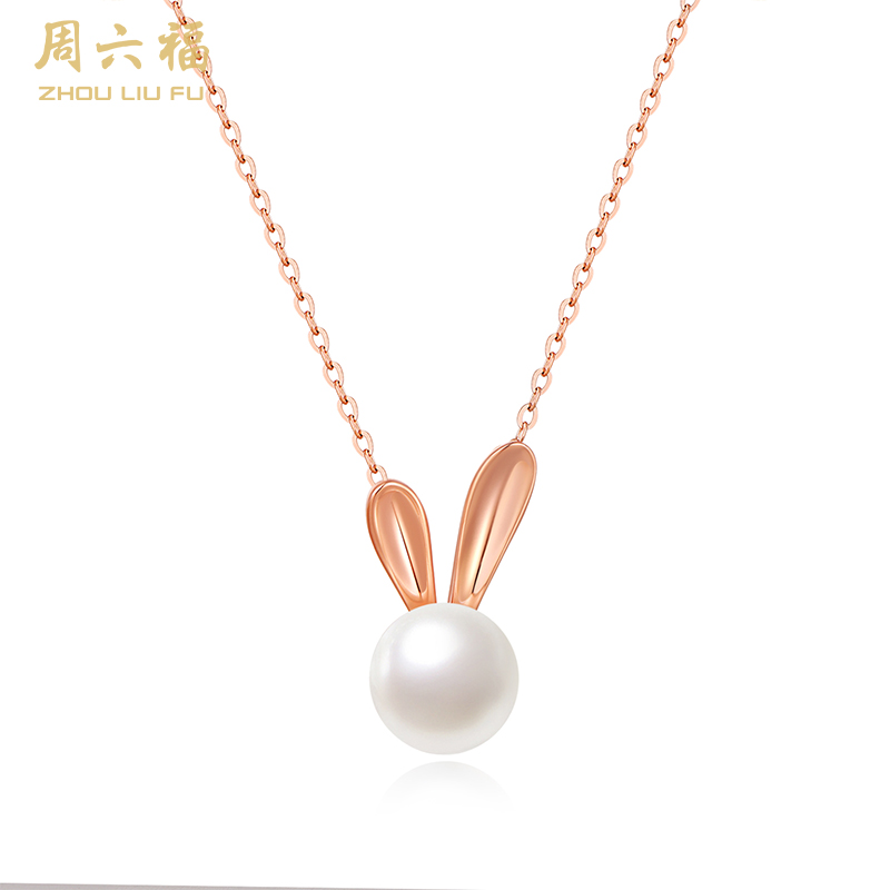 周六福925银珍珠小甜兔项链 ZLFX061448