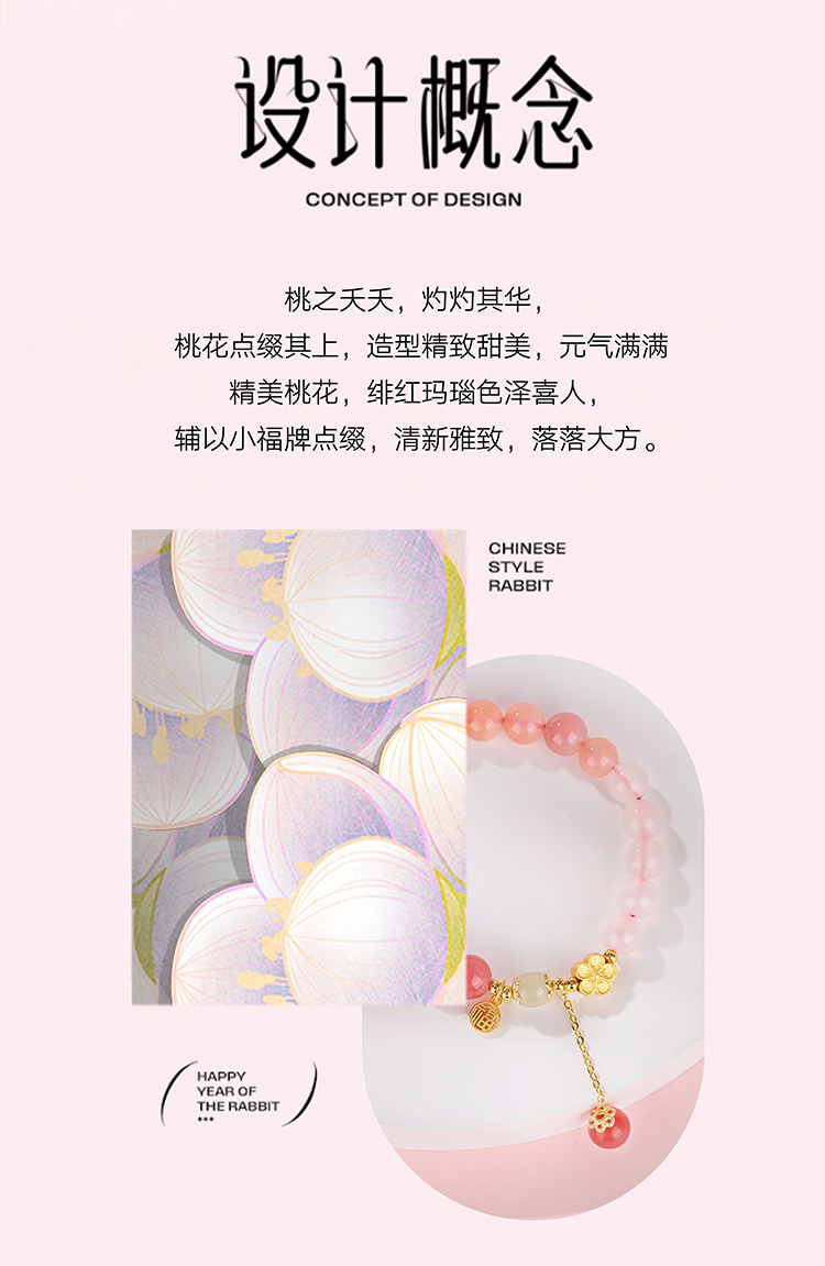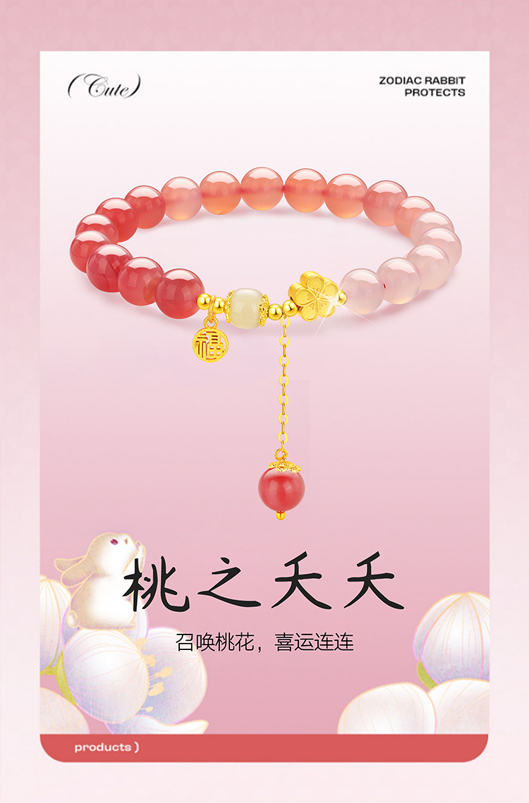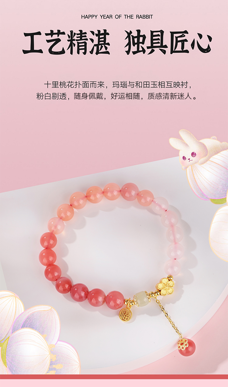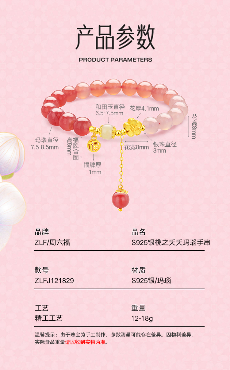 周六福S925银桃之夭夭玛瑙手串 ZLFJ121829