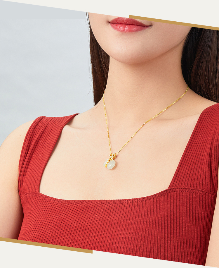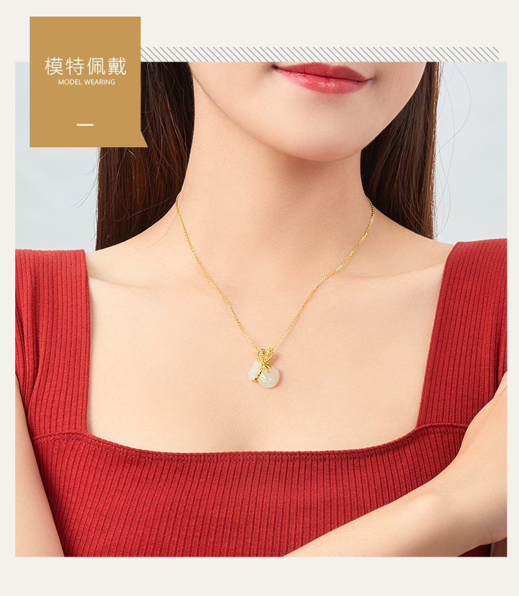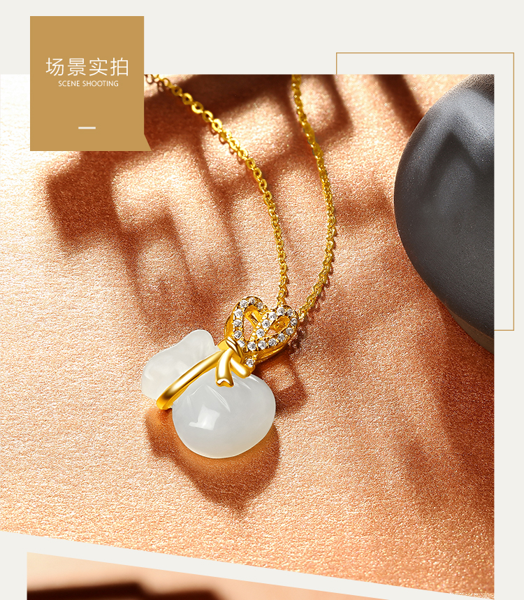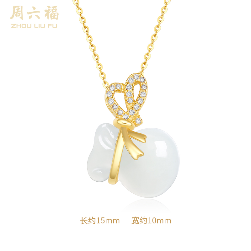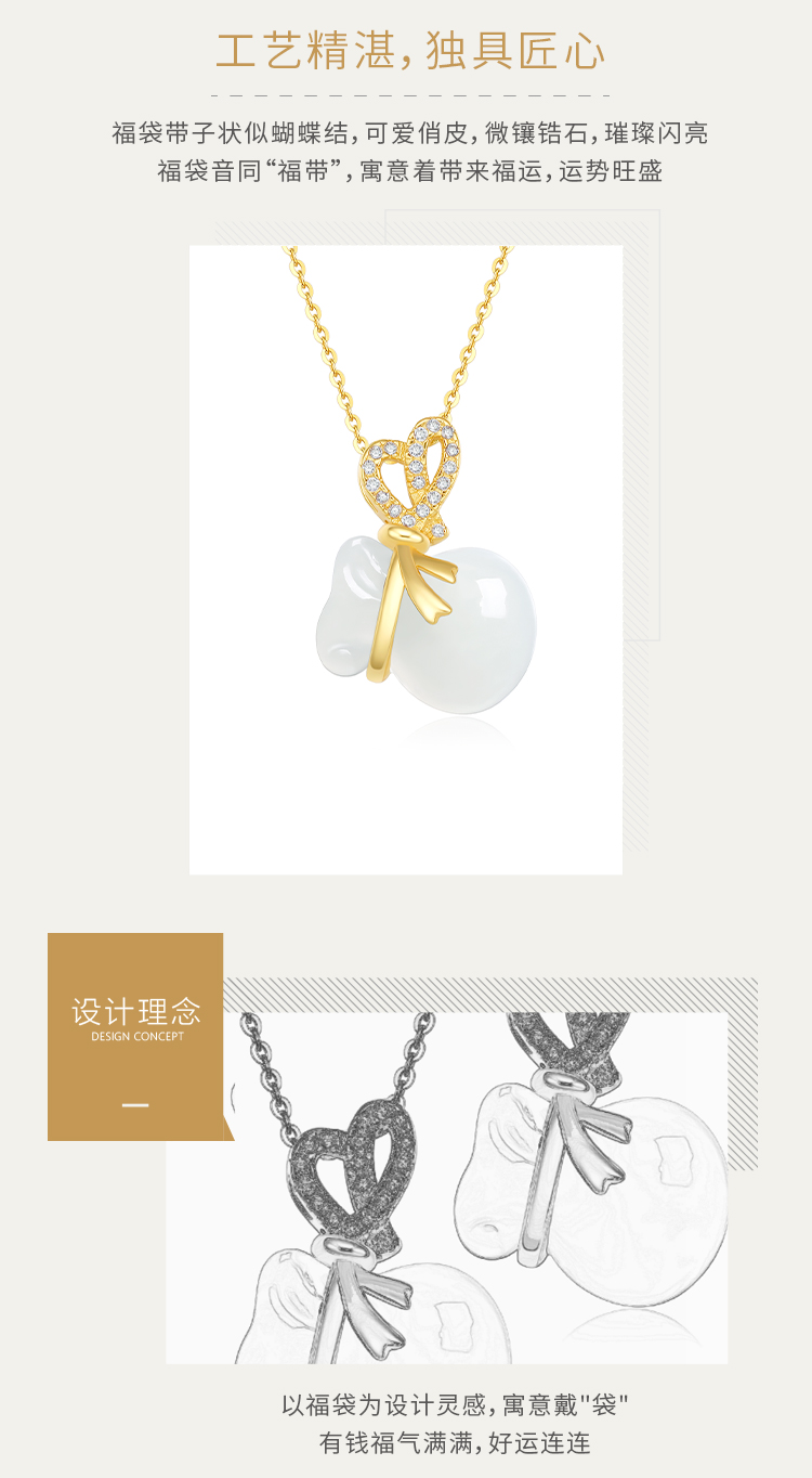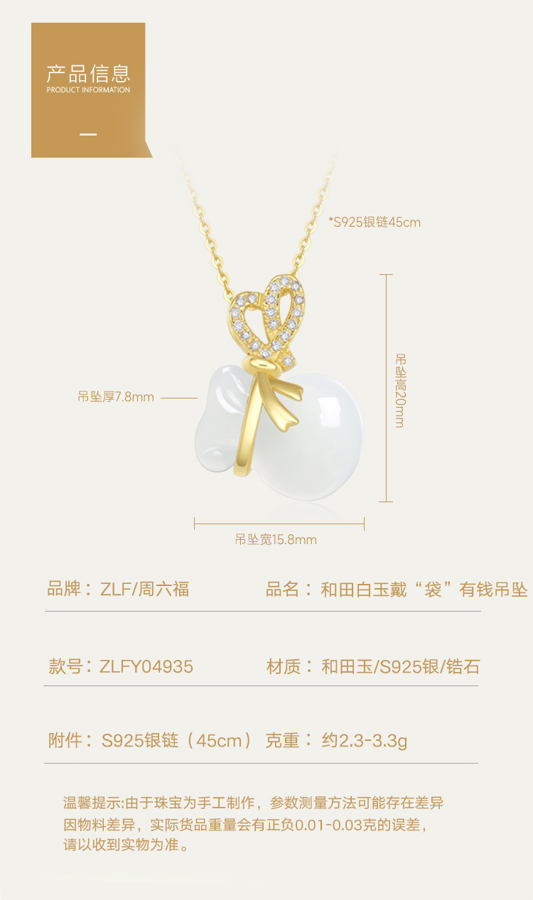 周六福S925银和田白玉戴“袋”有钱吊坠ZLFY04935