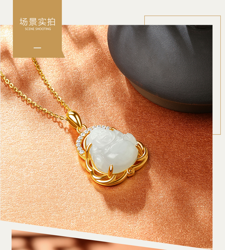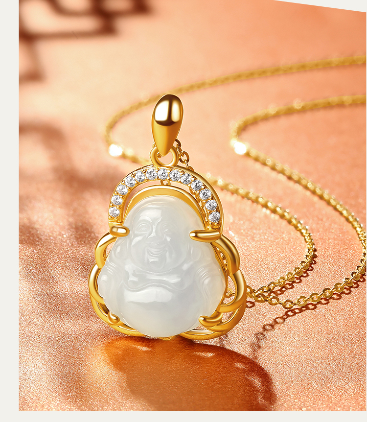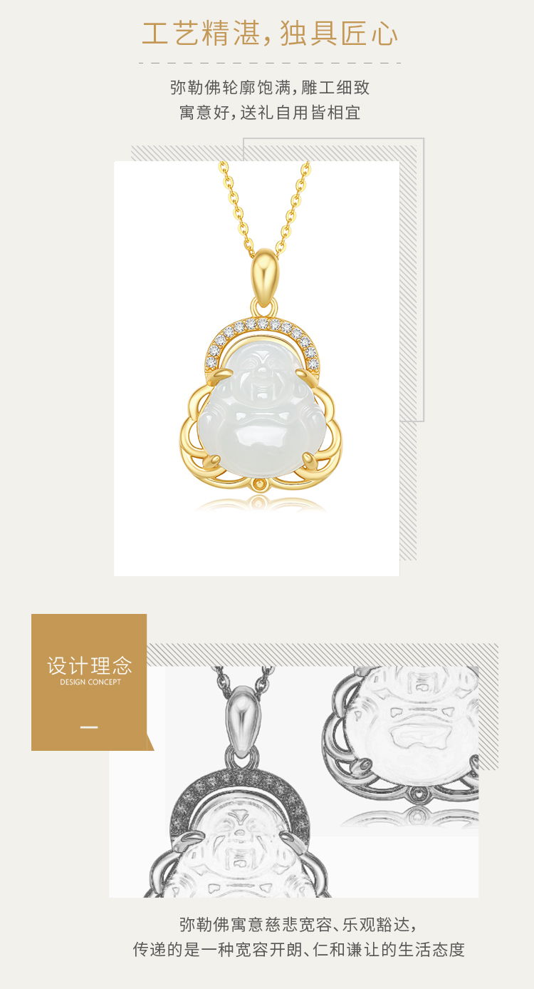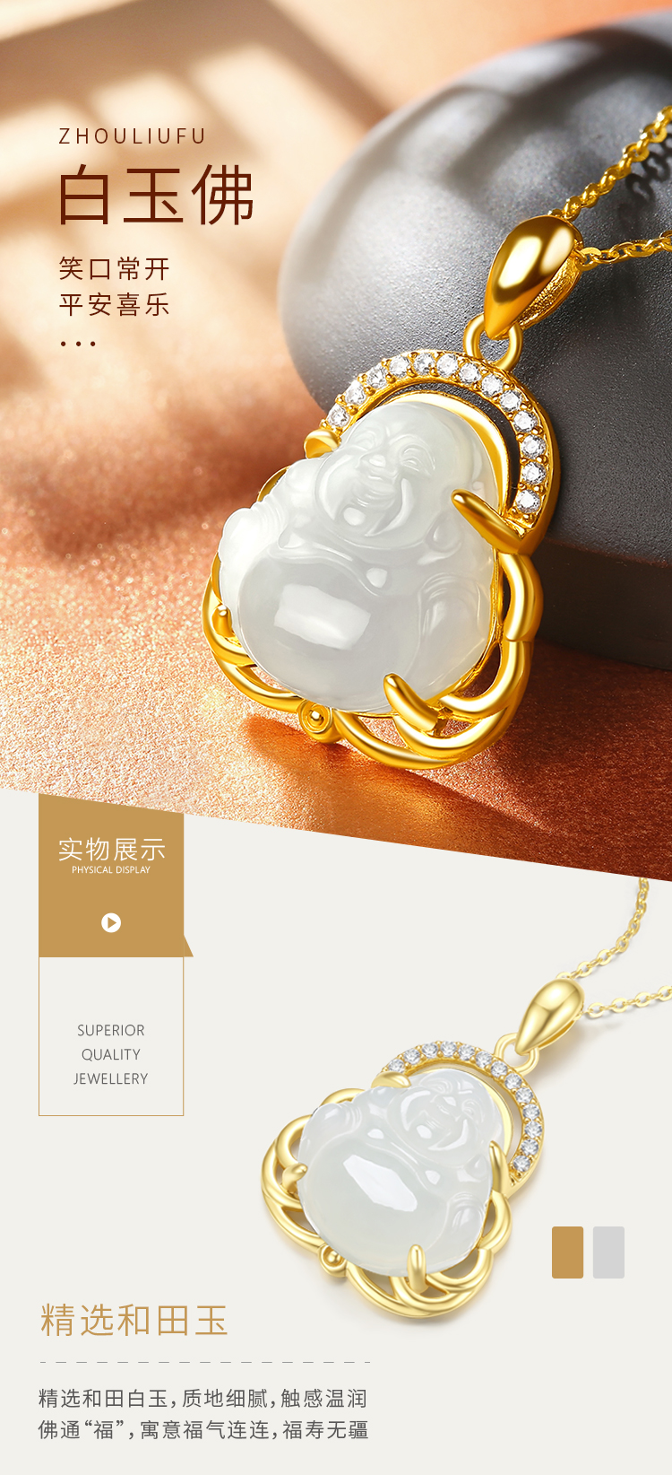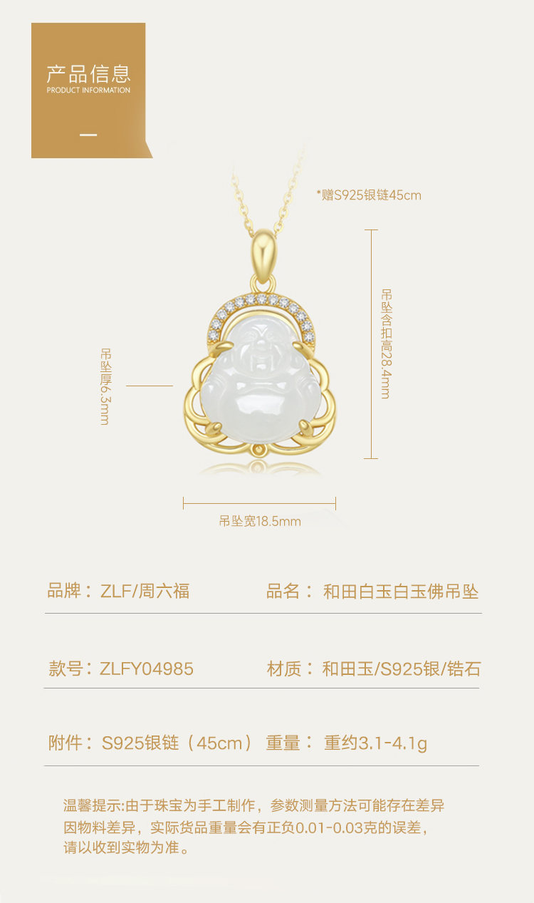 周六福S925银和田白玉白玉佛吊坠 ZLFY04985