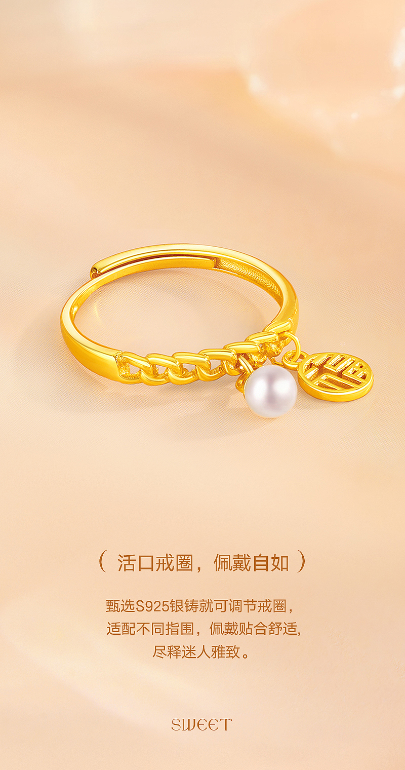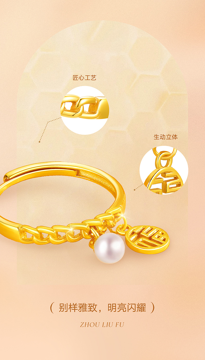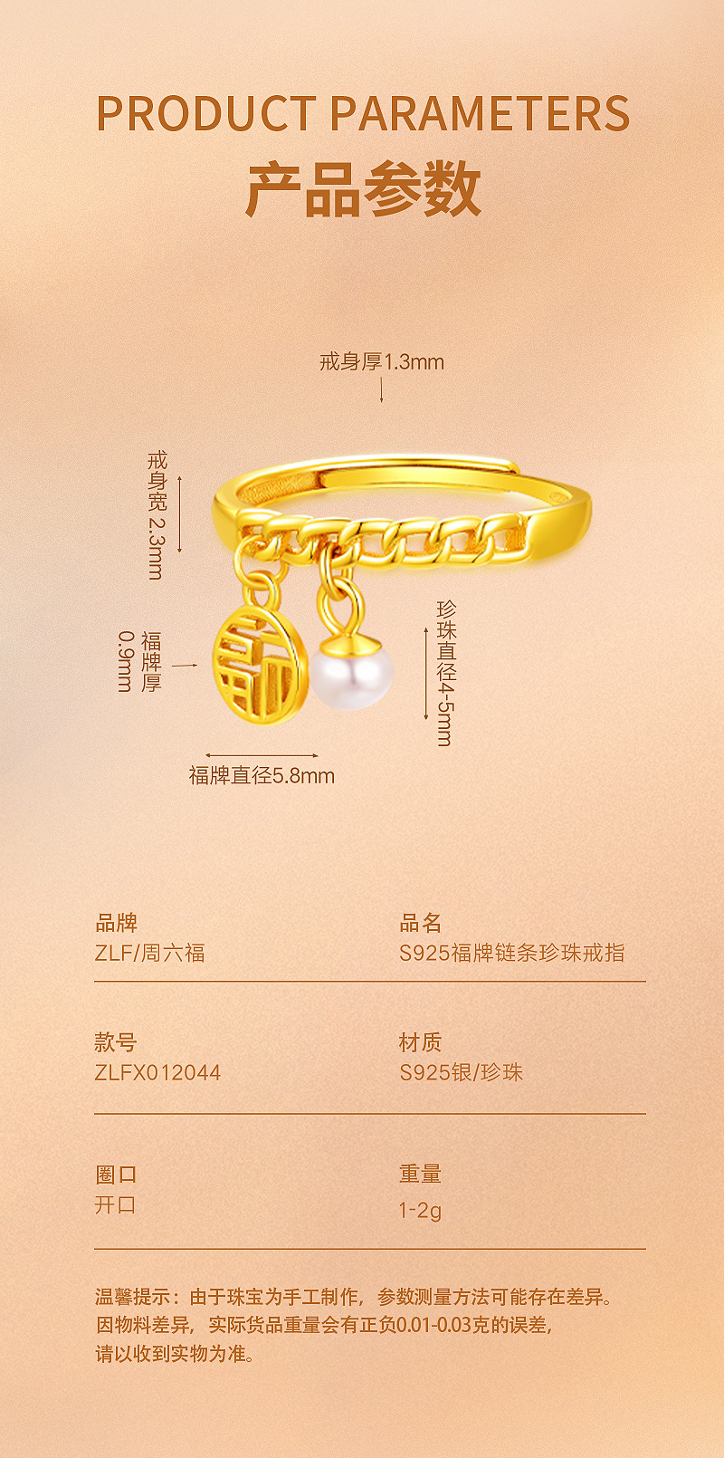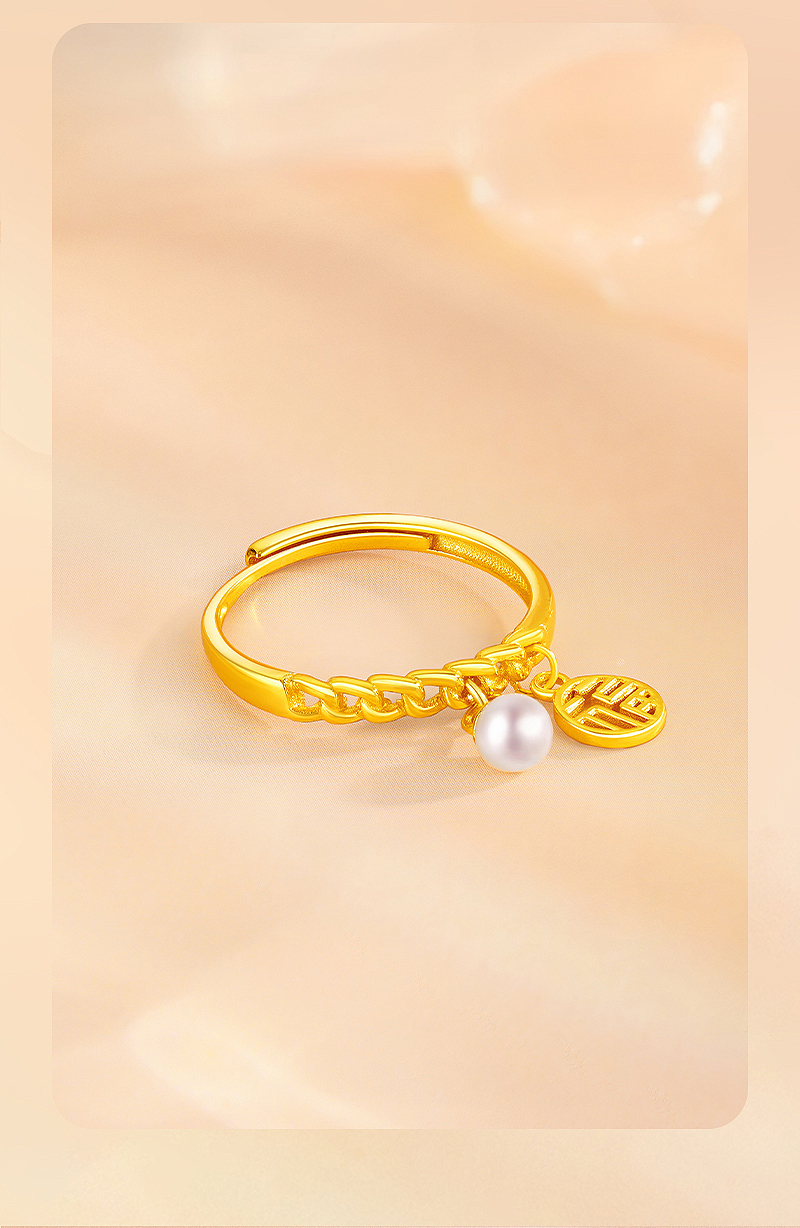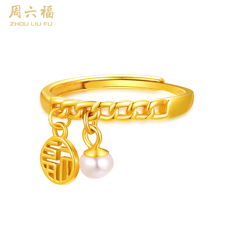 周六福S925福牌链条珍珠戒指ZLFX012044
