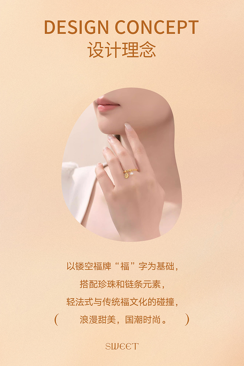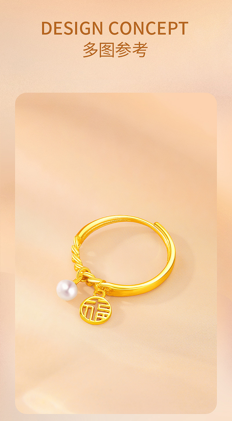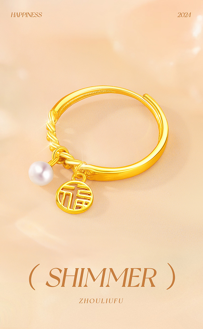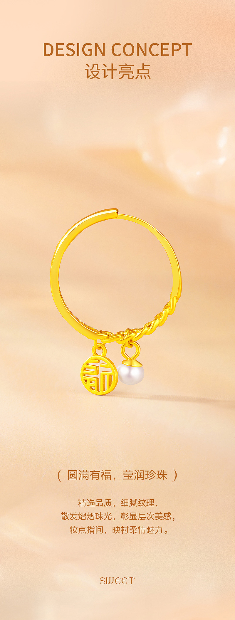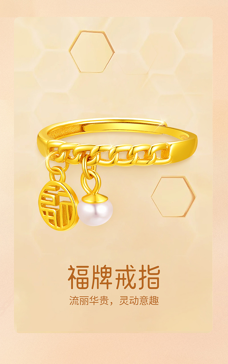 周六福S925福牌链条珍珠戒指ZLFX012044