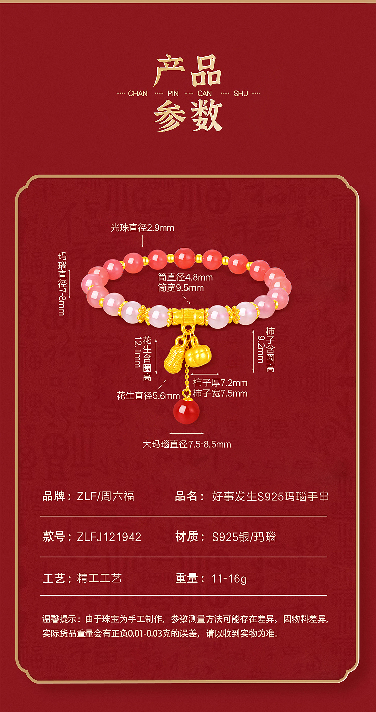 周六福好事发生S925玛瑙手串 ZLFJ121942