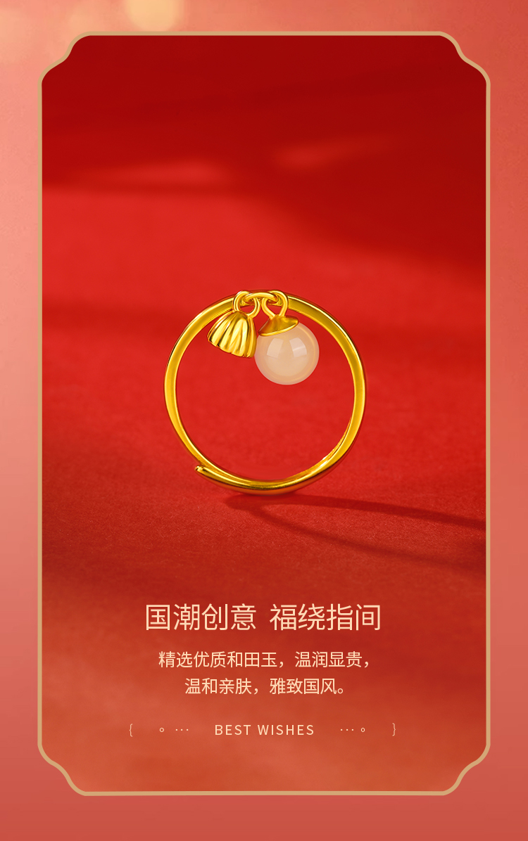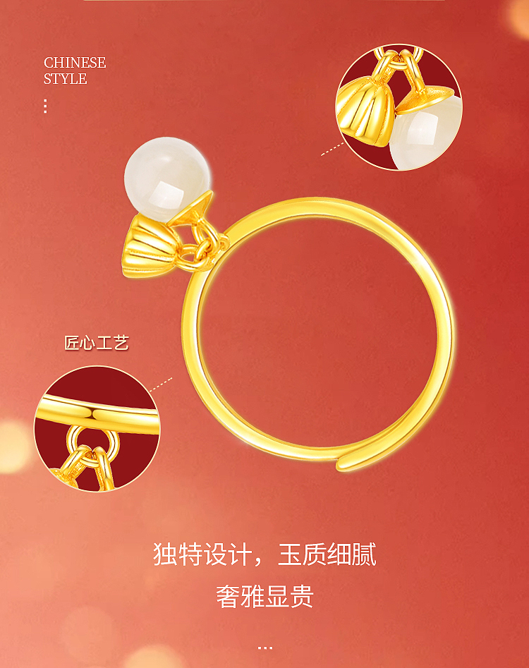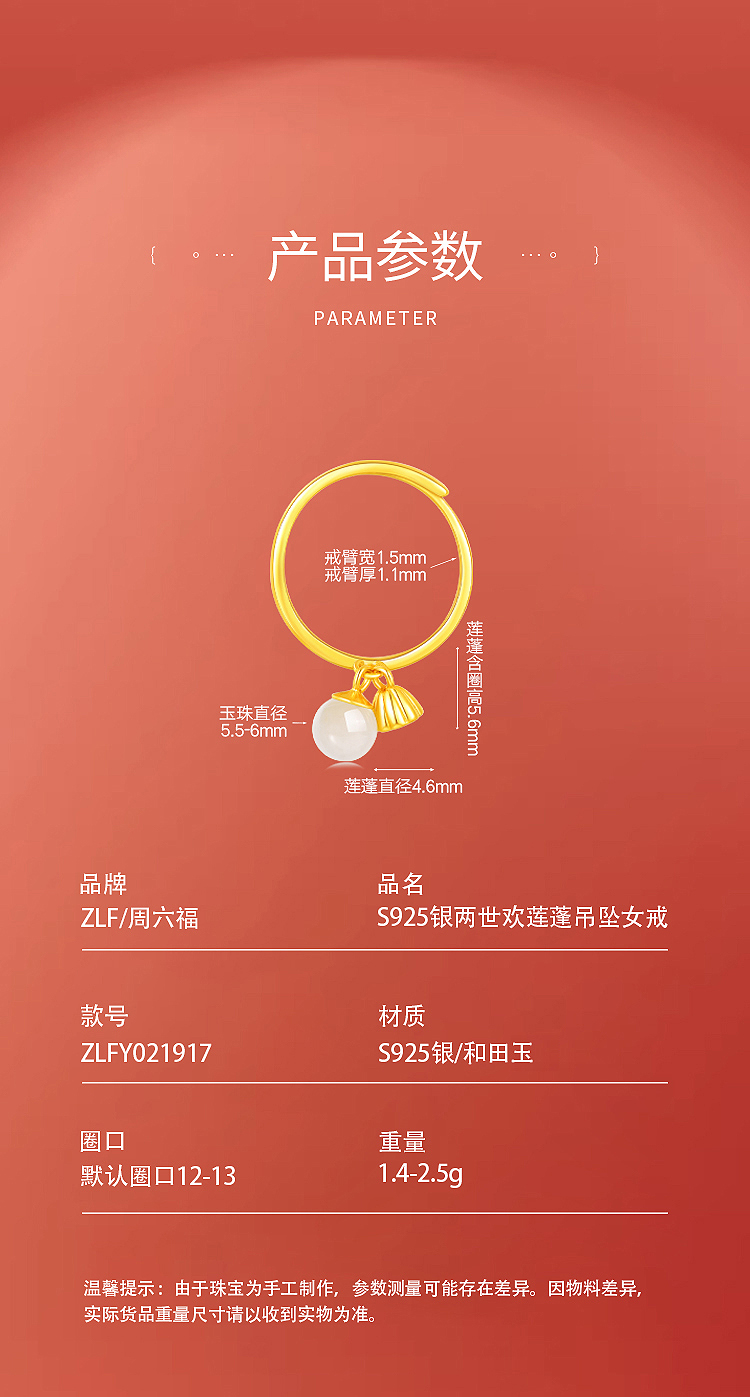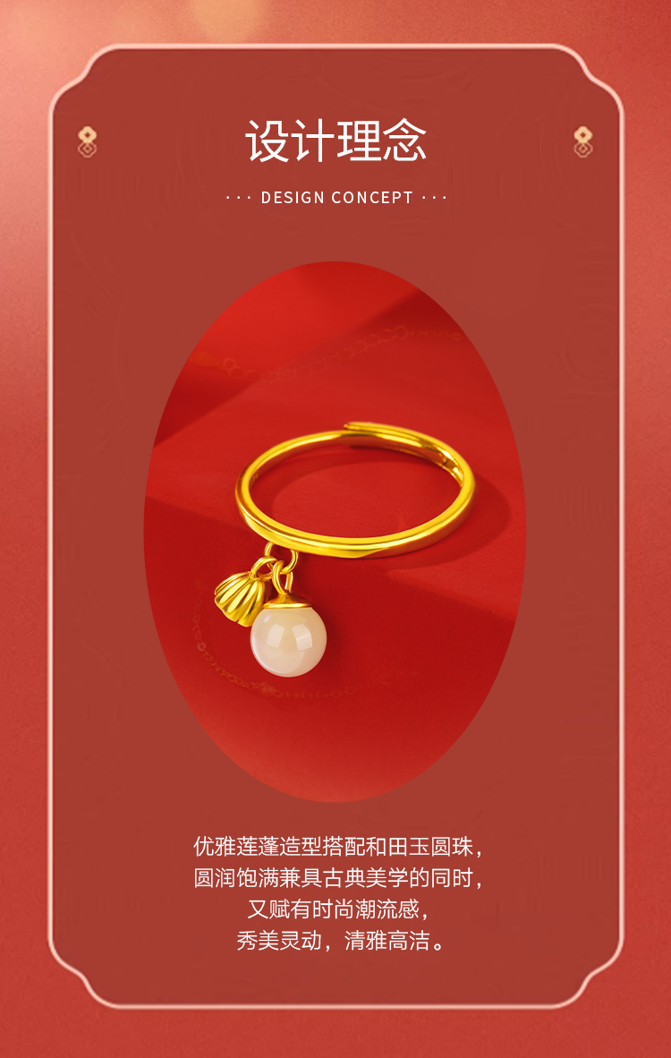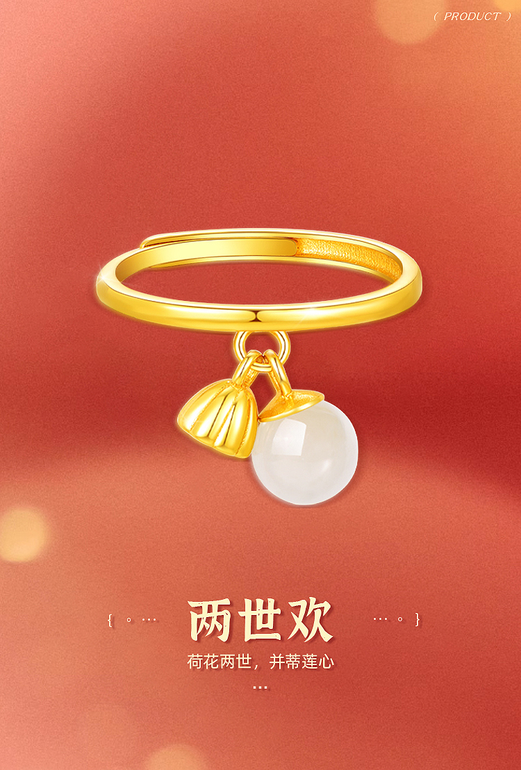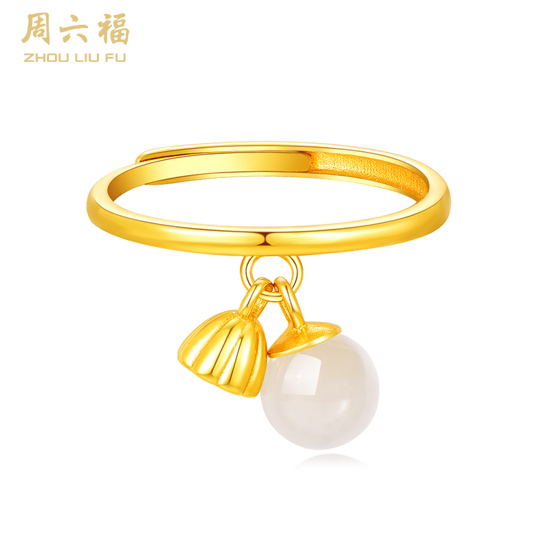 周六福两世欢莲蓬吊坠女戒 ZLFY021917