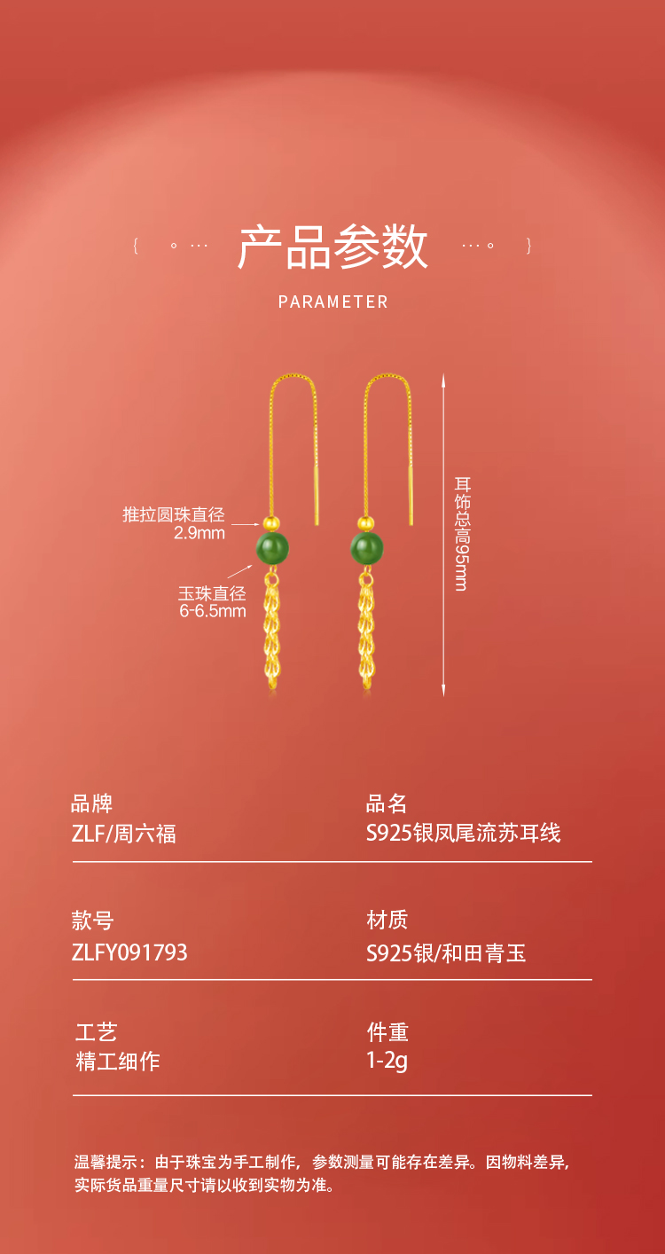 周六福S925银凤尾流苏耳线 ZLFY091793