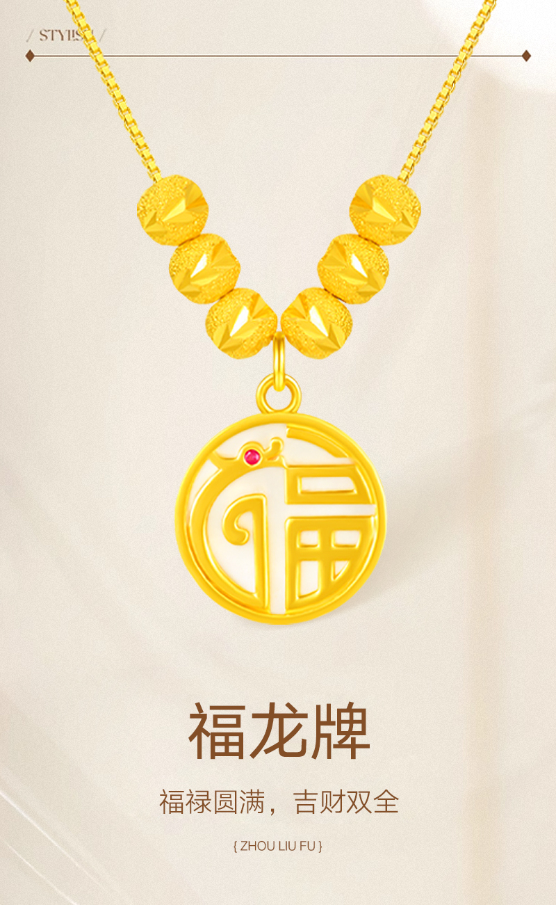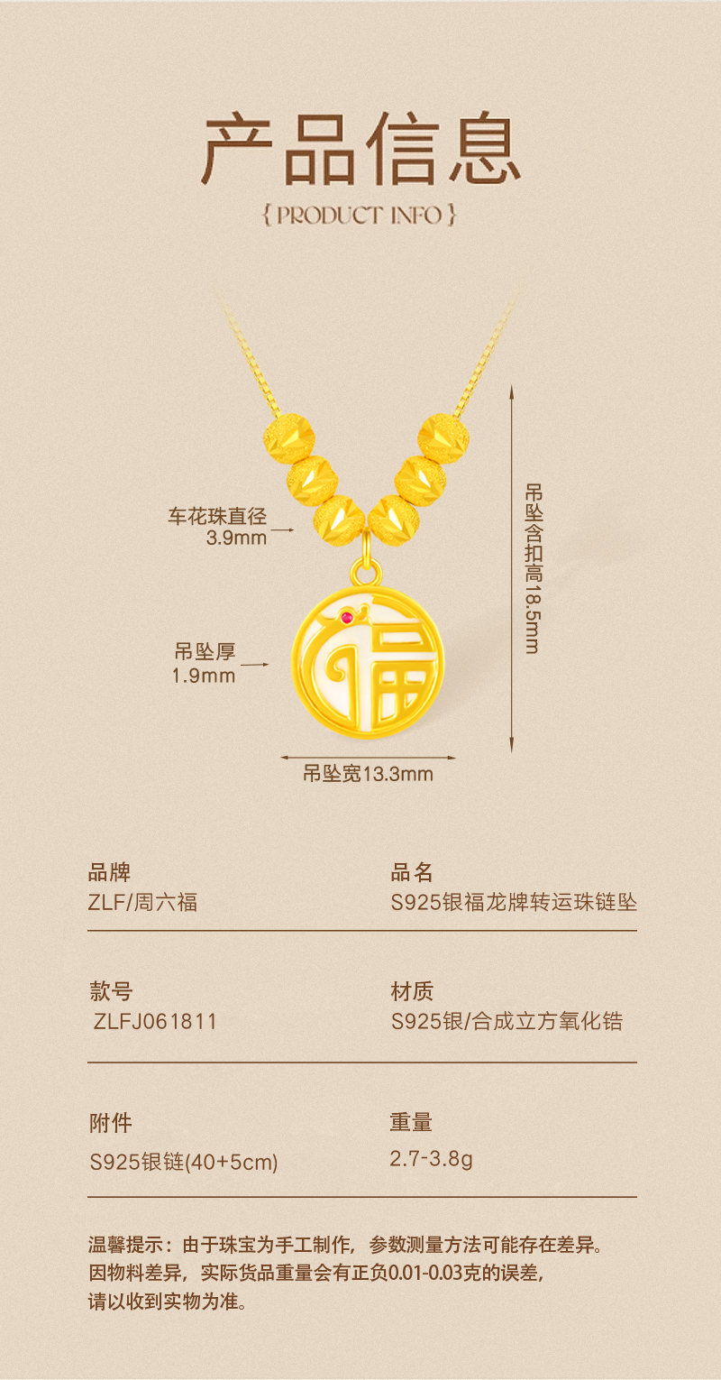 周六福S925银福龙牌转运珠项链 ZLFJ061811