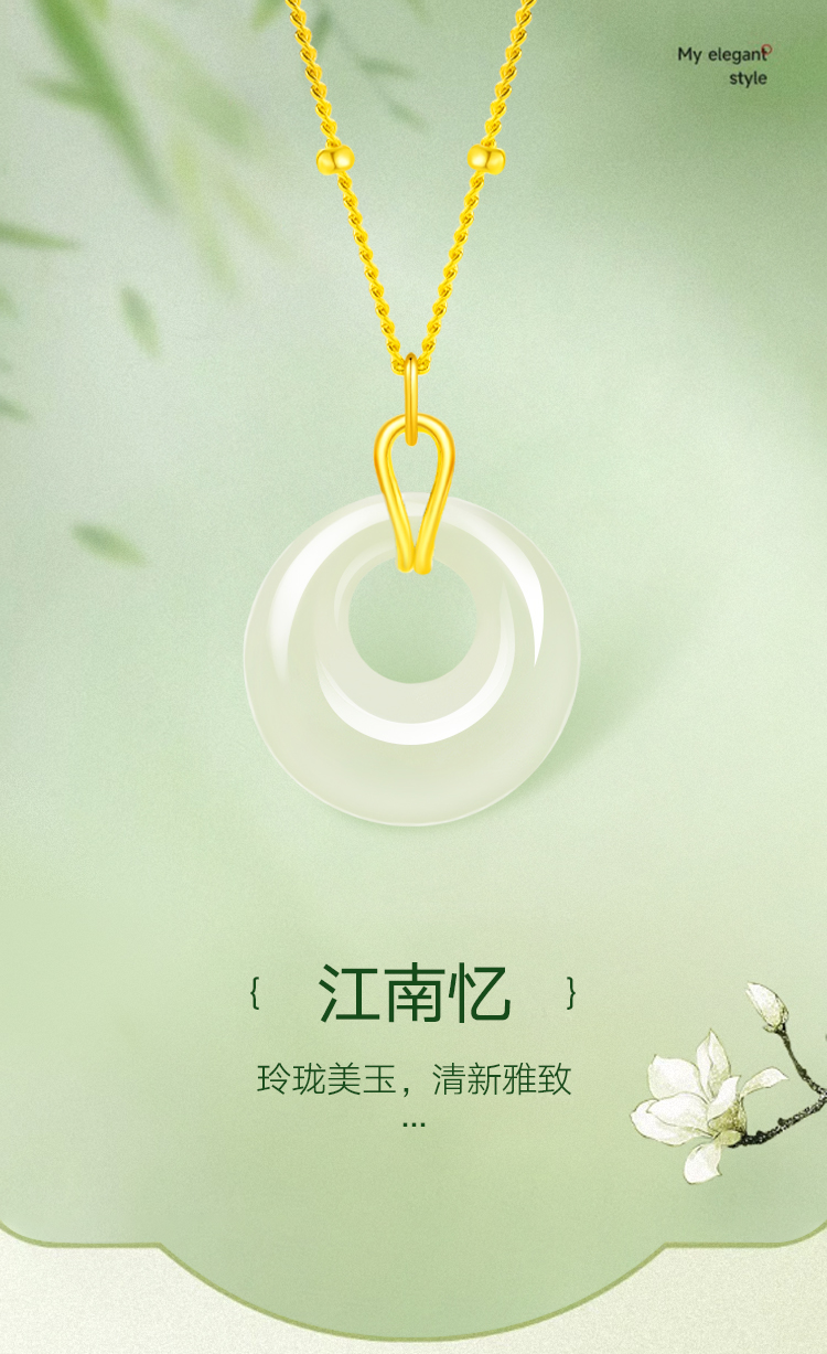 周六福S925银江南忆和田玉链坠 ZLFY061791