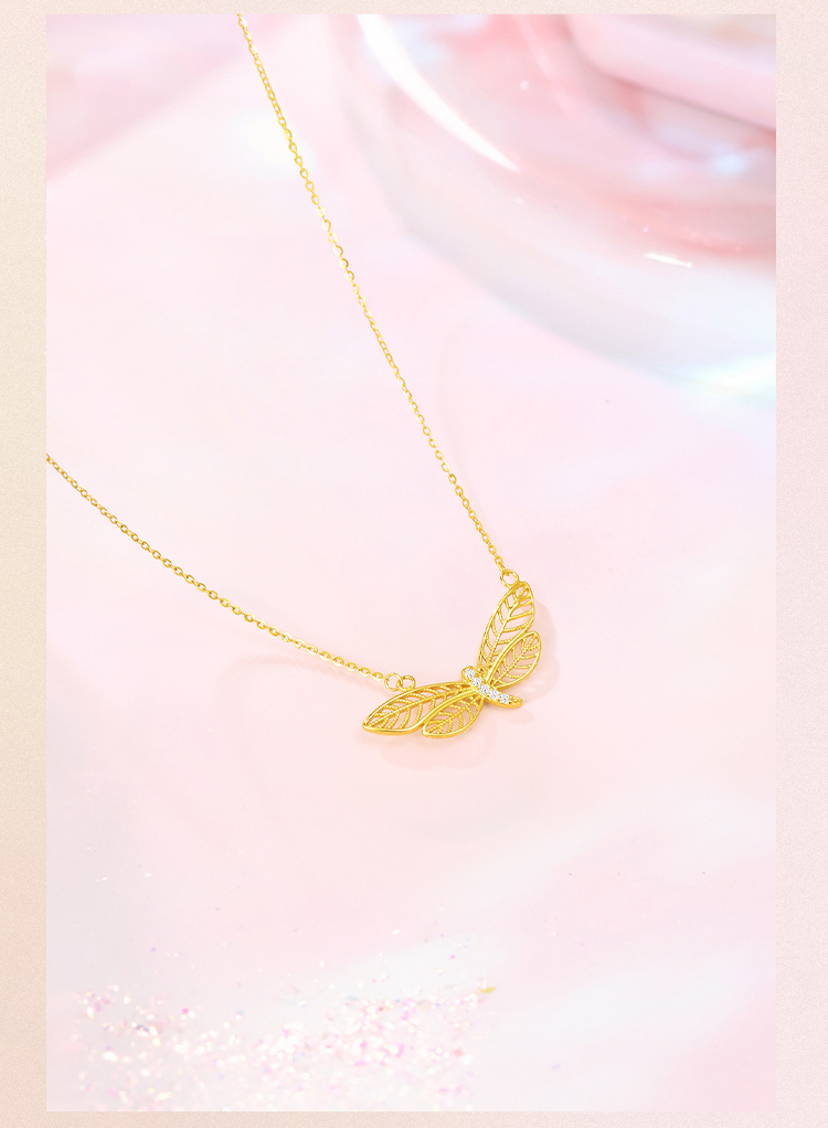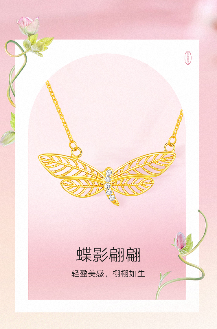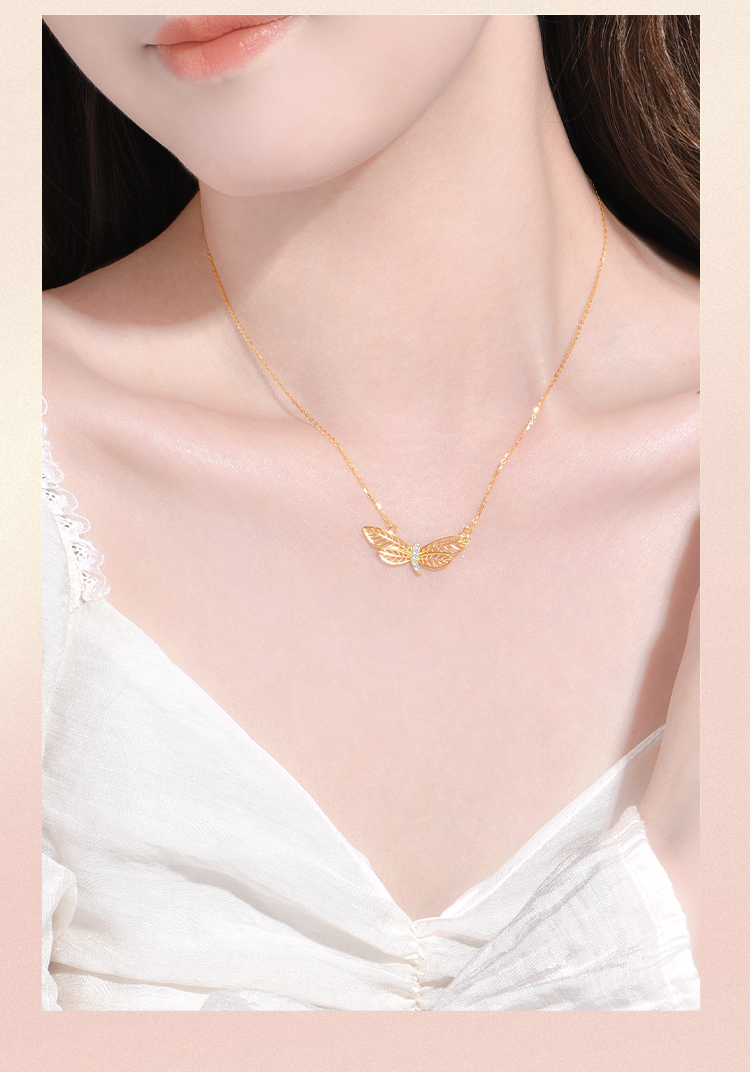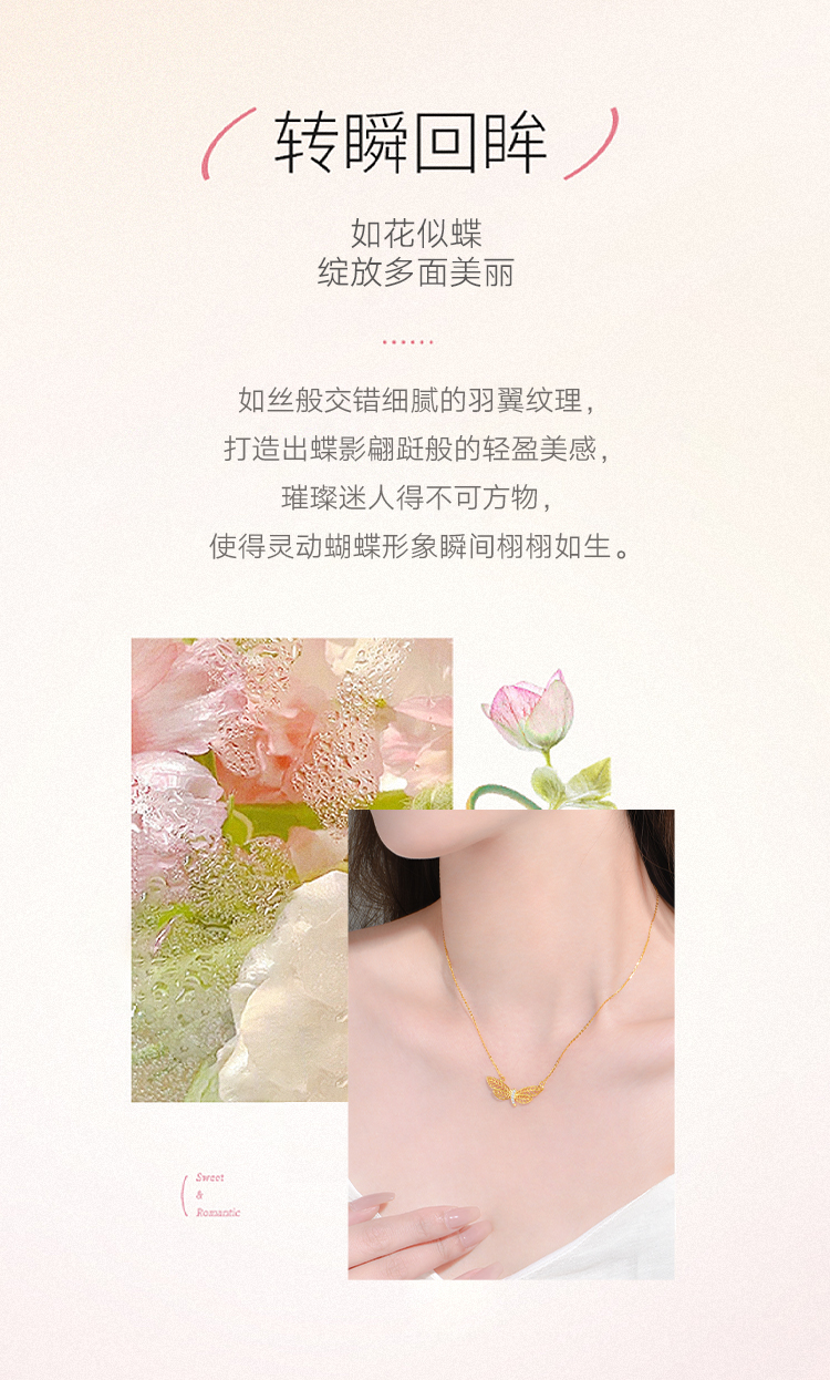 周六福S925银和田玉蝶影翩翩项链 ZLFJ061574