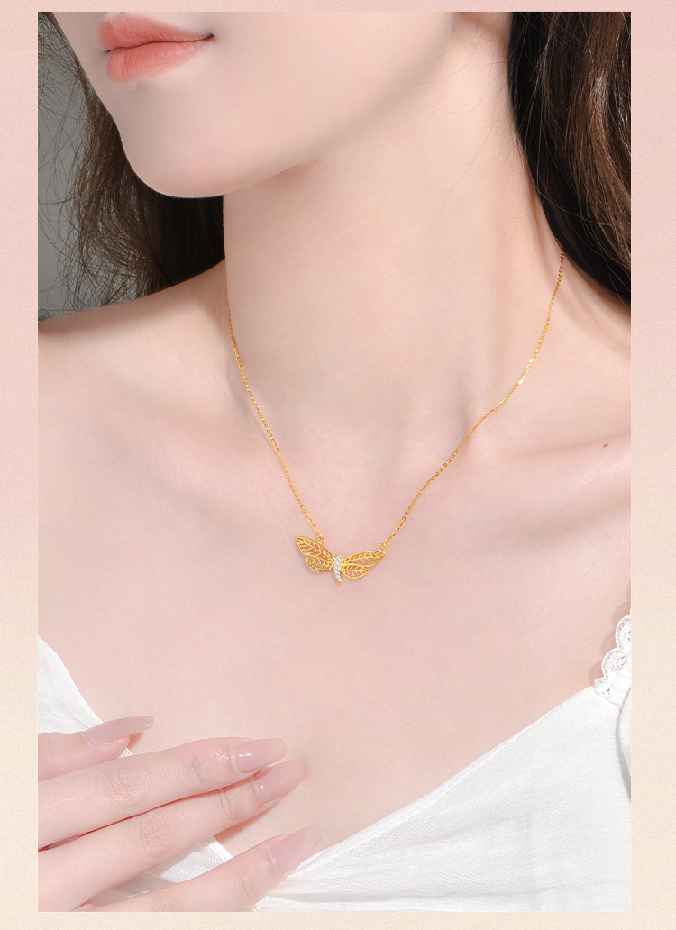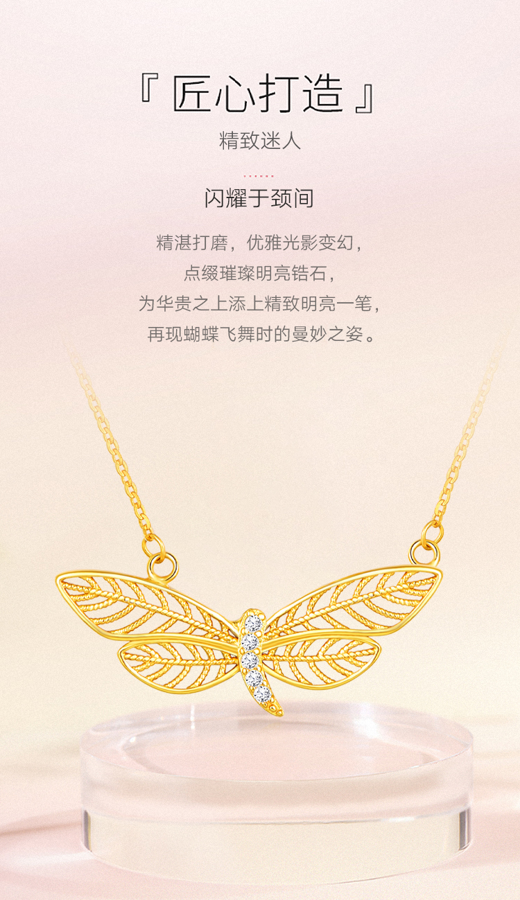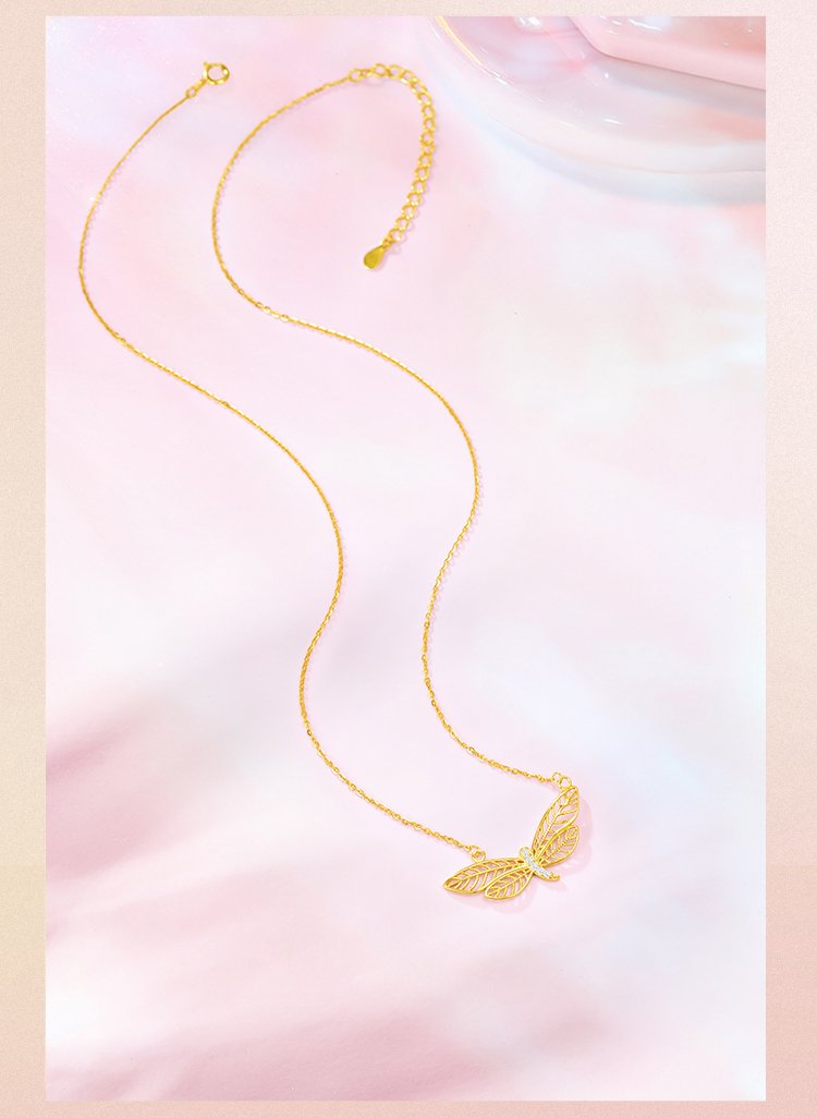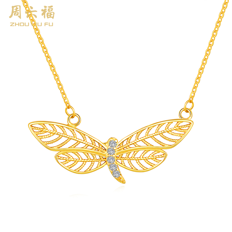 周六福S925银和田玉蝶影翩翩项链 ZLFJ061574