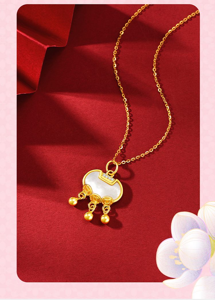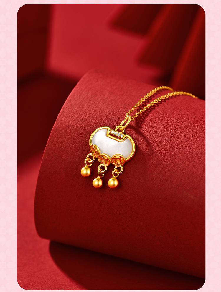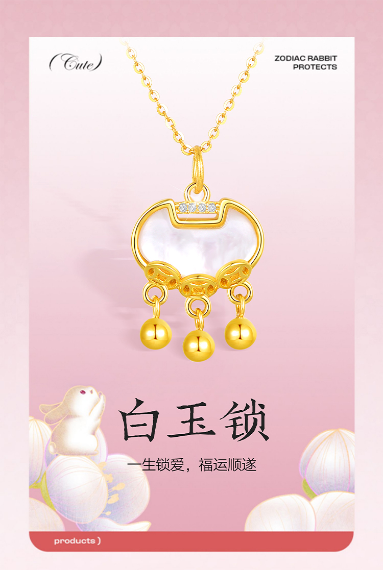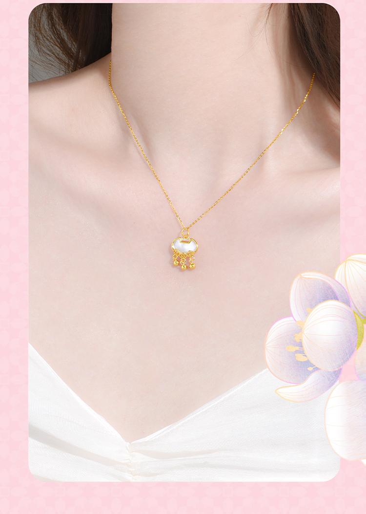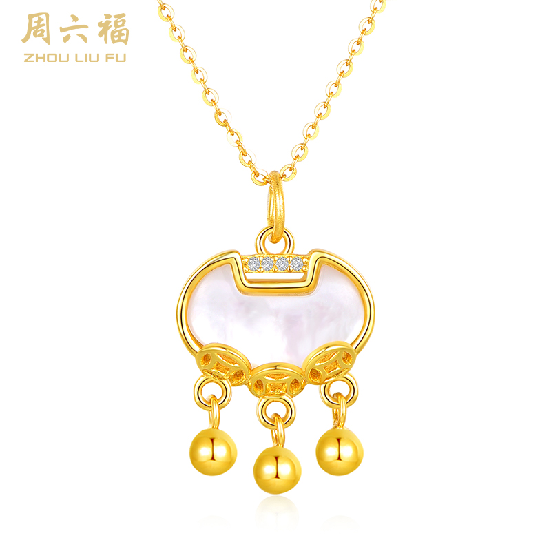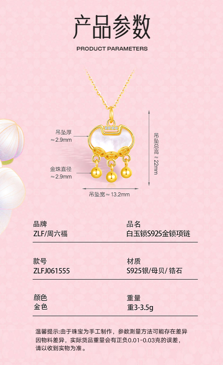周六福白玉锁S925金锁项链 ZLFJ061555