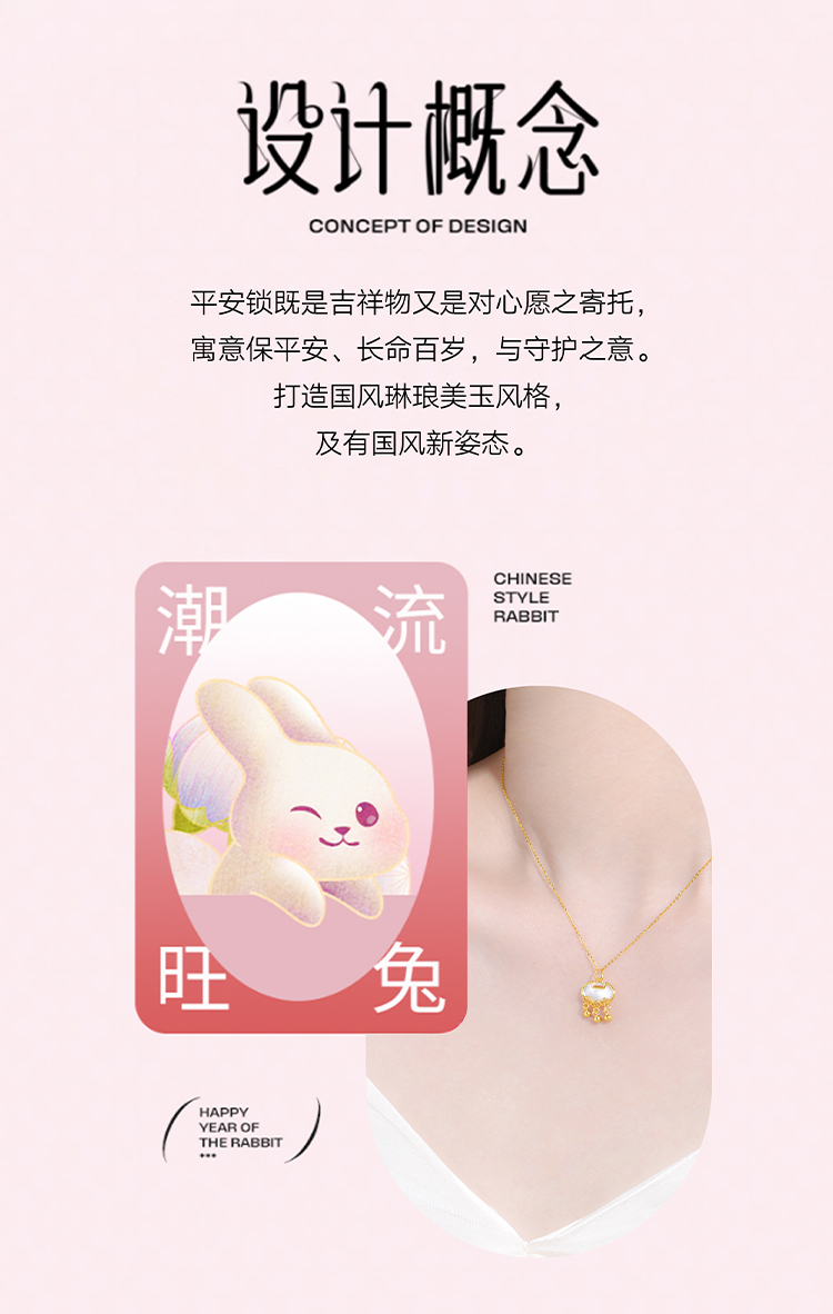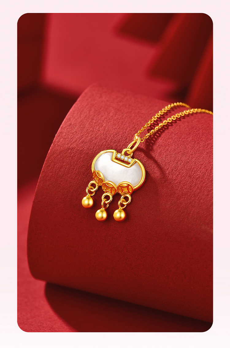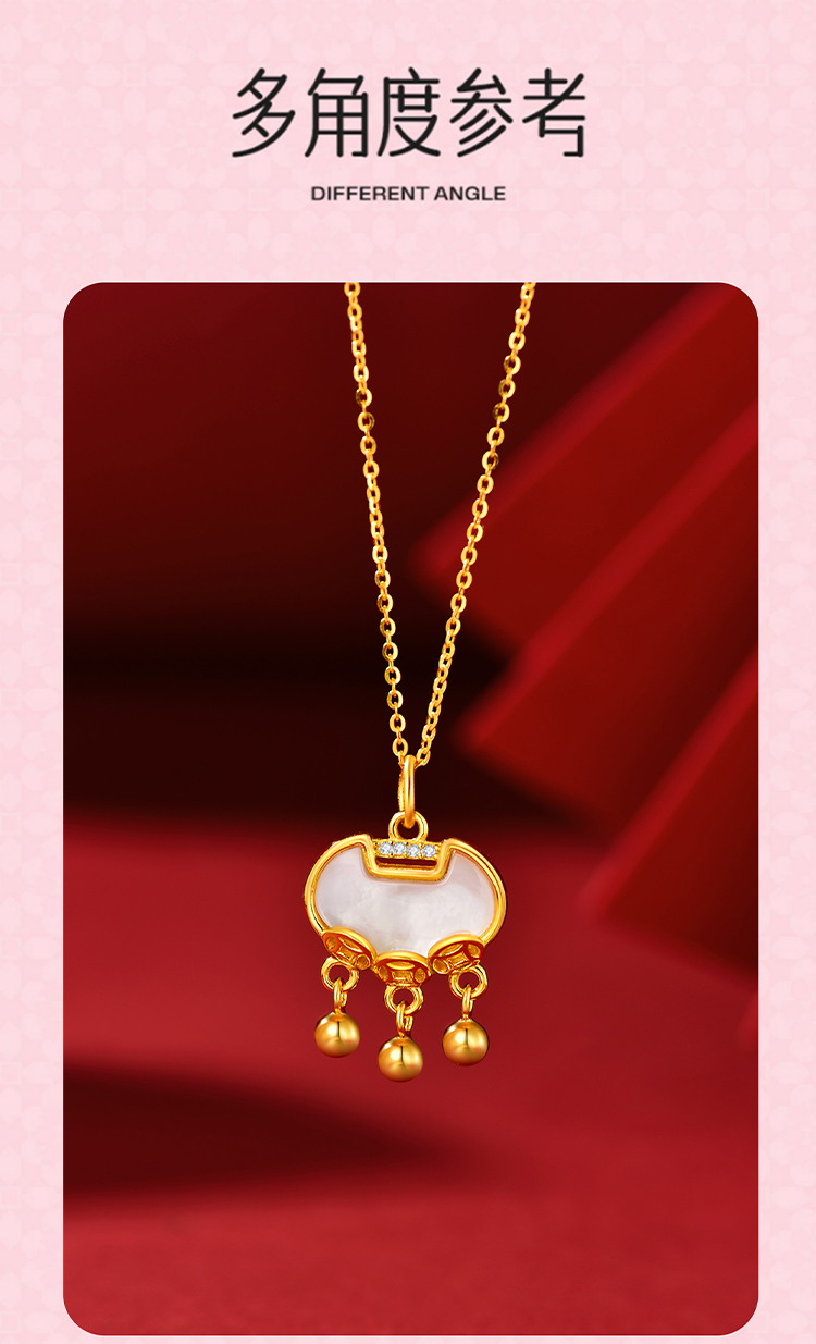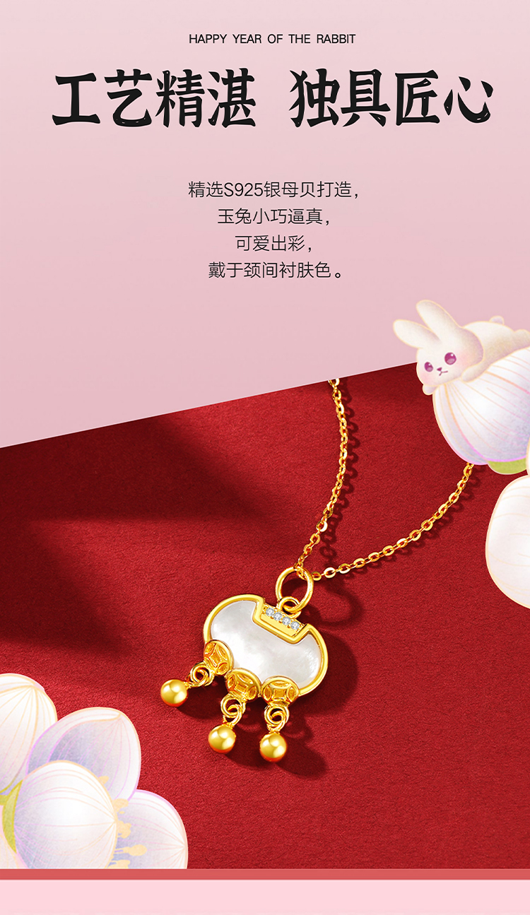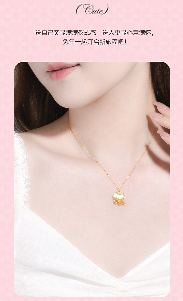 周六福白玉锁S925金锁项链 ZLFJ061555