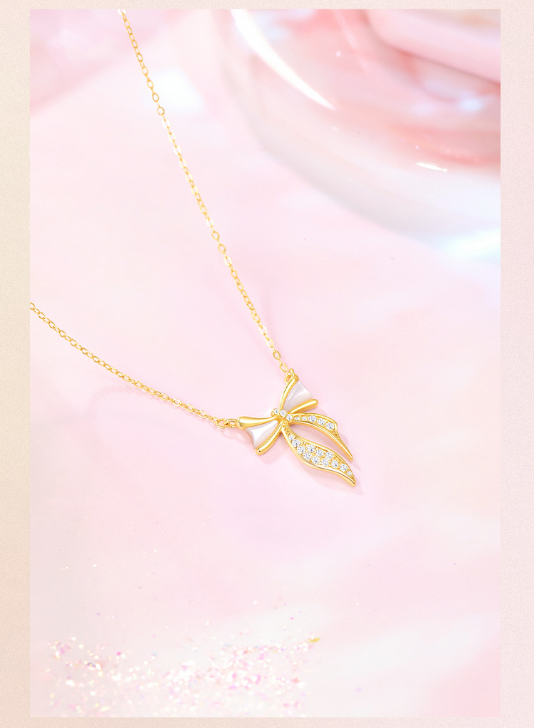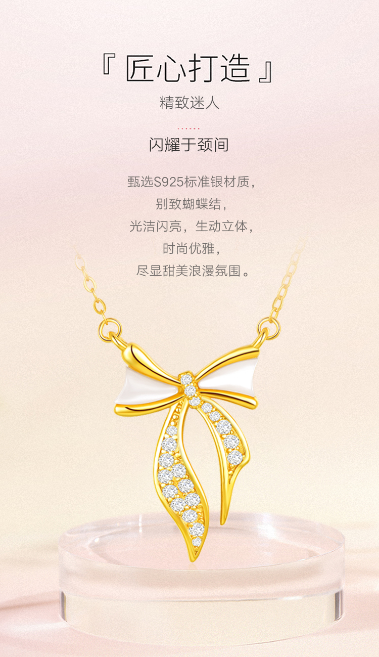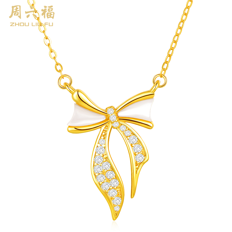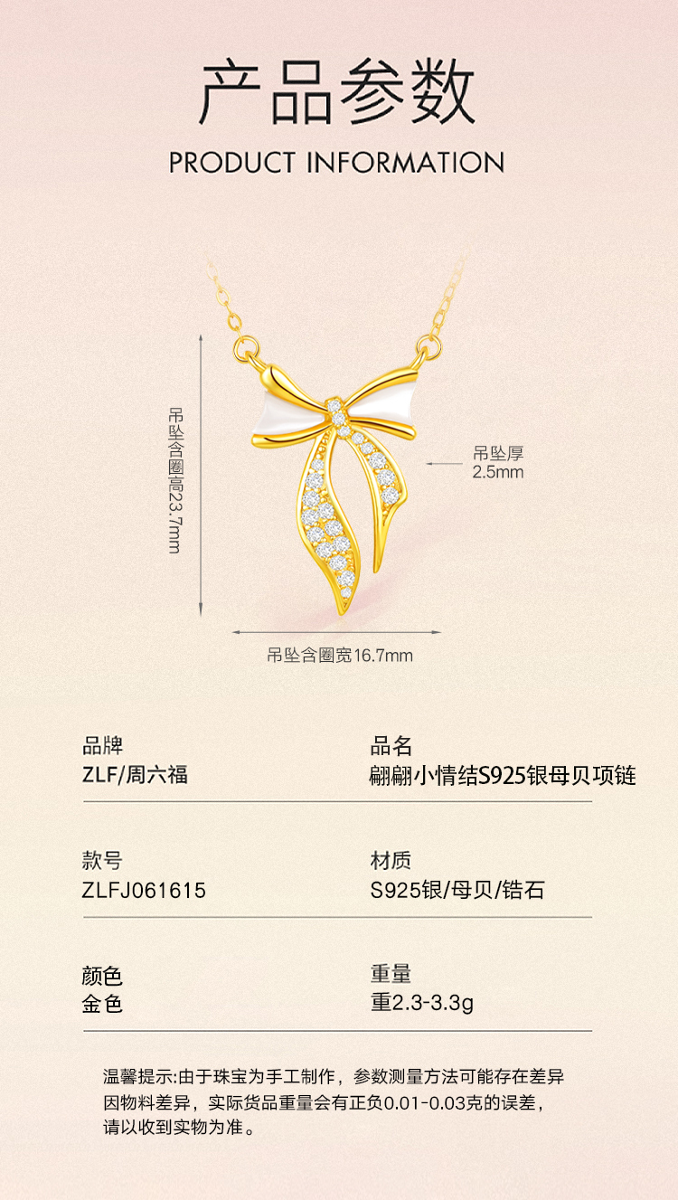 周六福翩翩小情结S925银母贝项链 ZLFJ061615